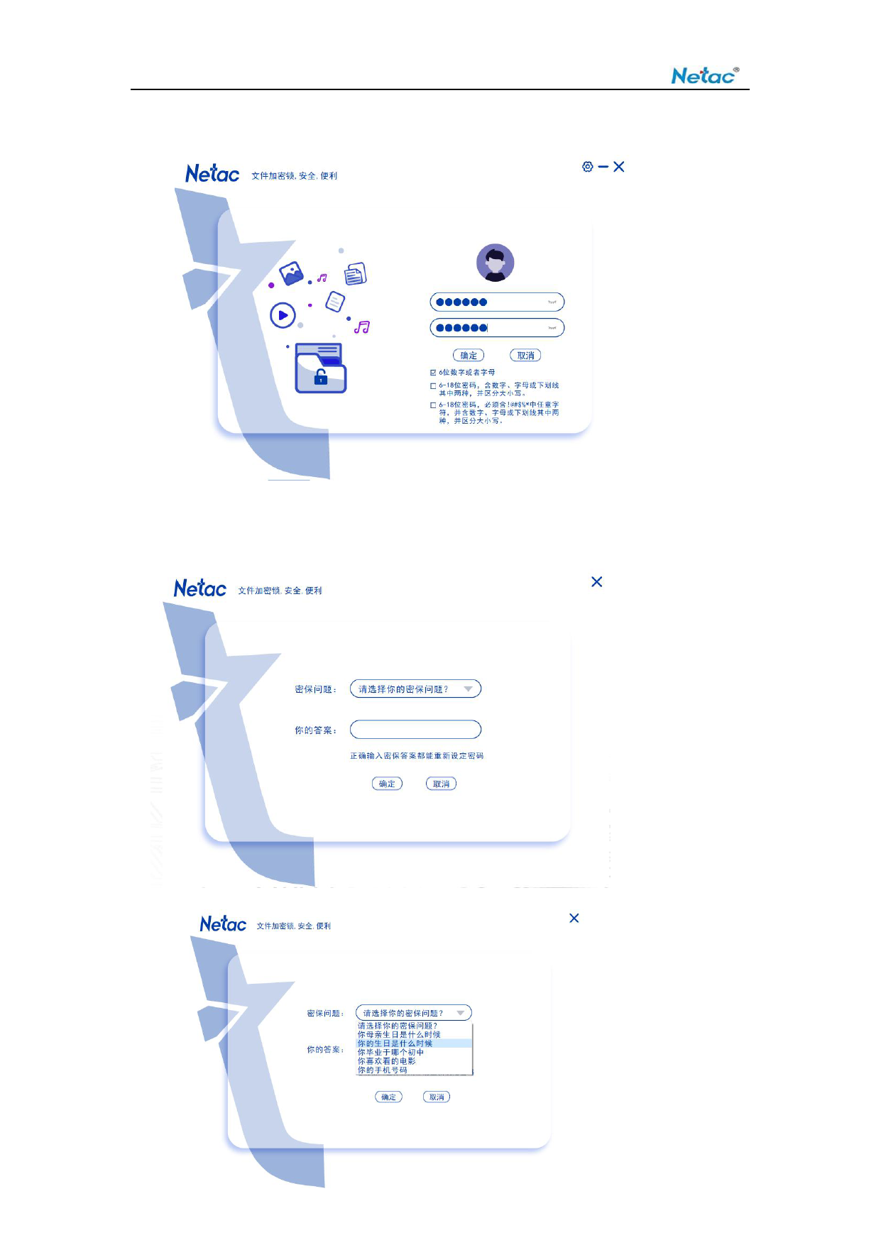 设置完密码,点击确定,会进入密保设置界面,可在5个密保问题中选择一个进行设置