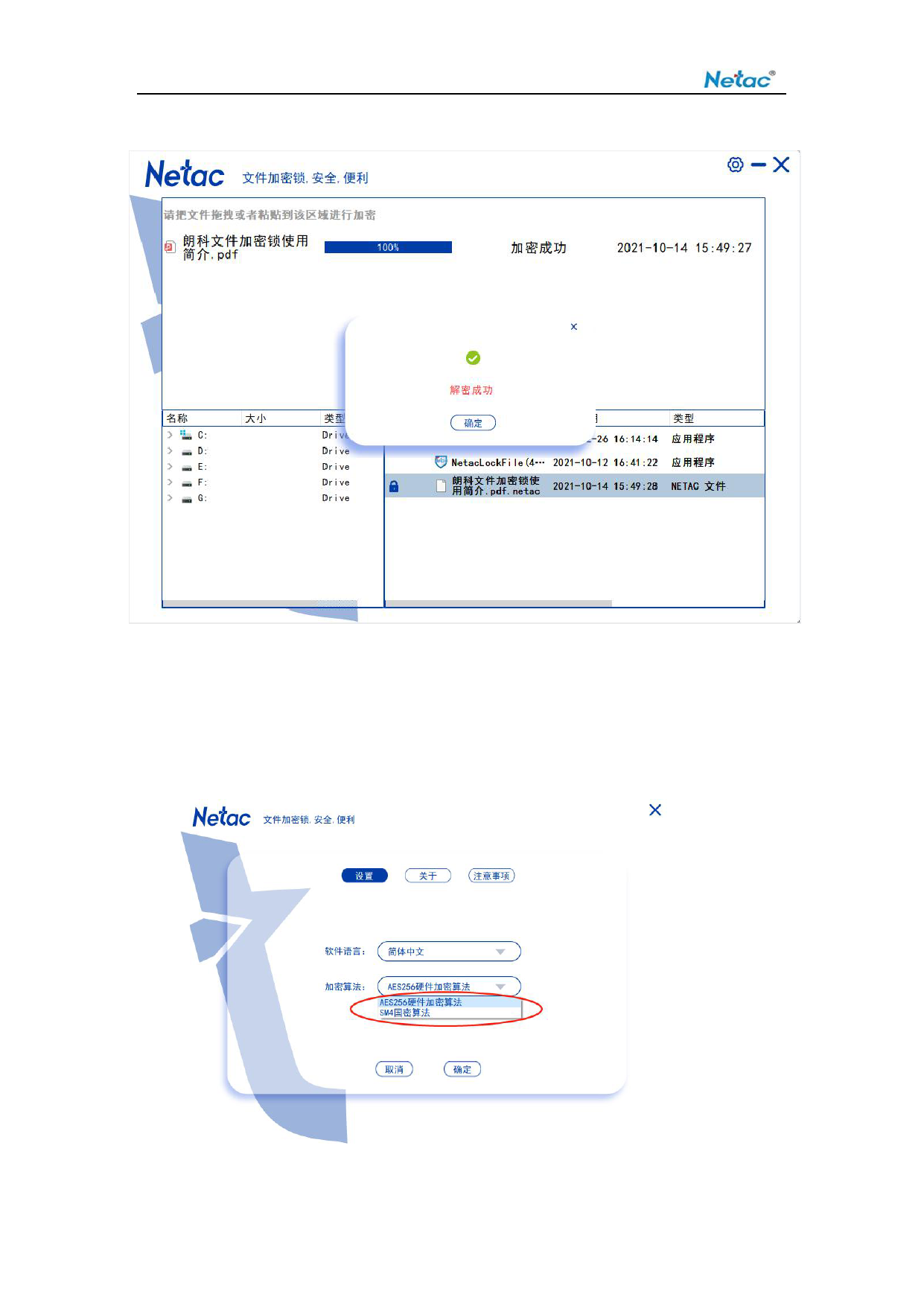使用过程中,用户可自由选择加密算法进行文件加密,加密算法设置需在加密之前选择