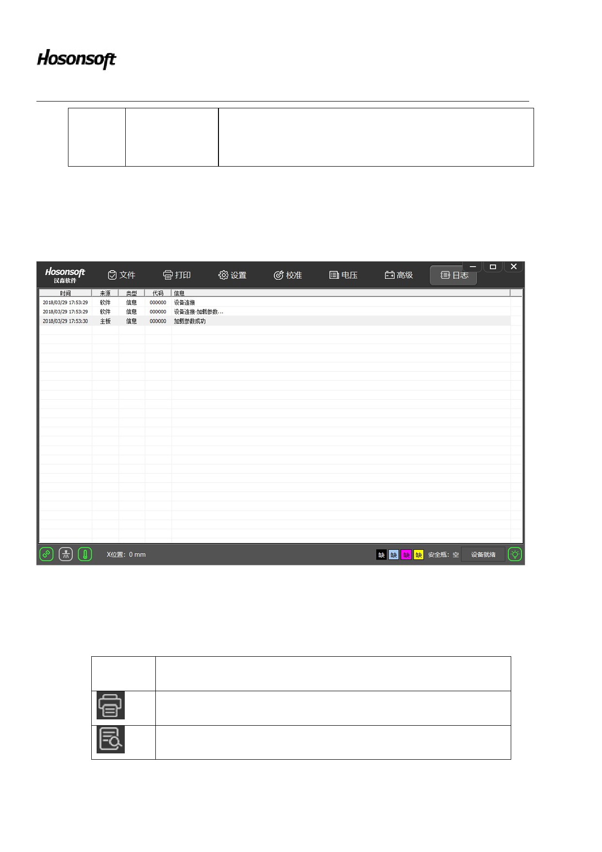 Click the log button in the lower right corner of the printing software to enter the log window, as shown below: