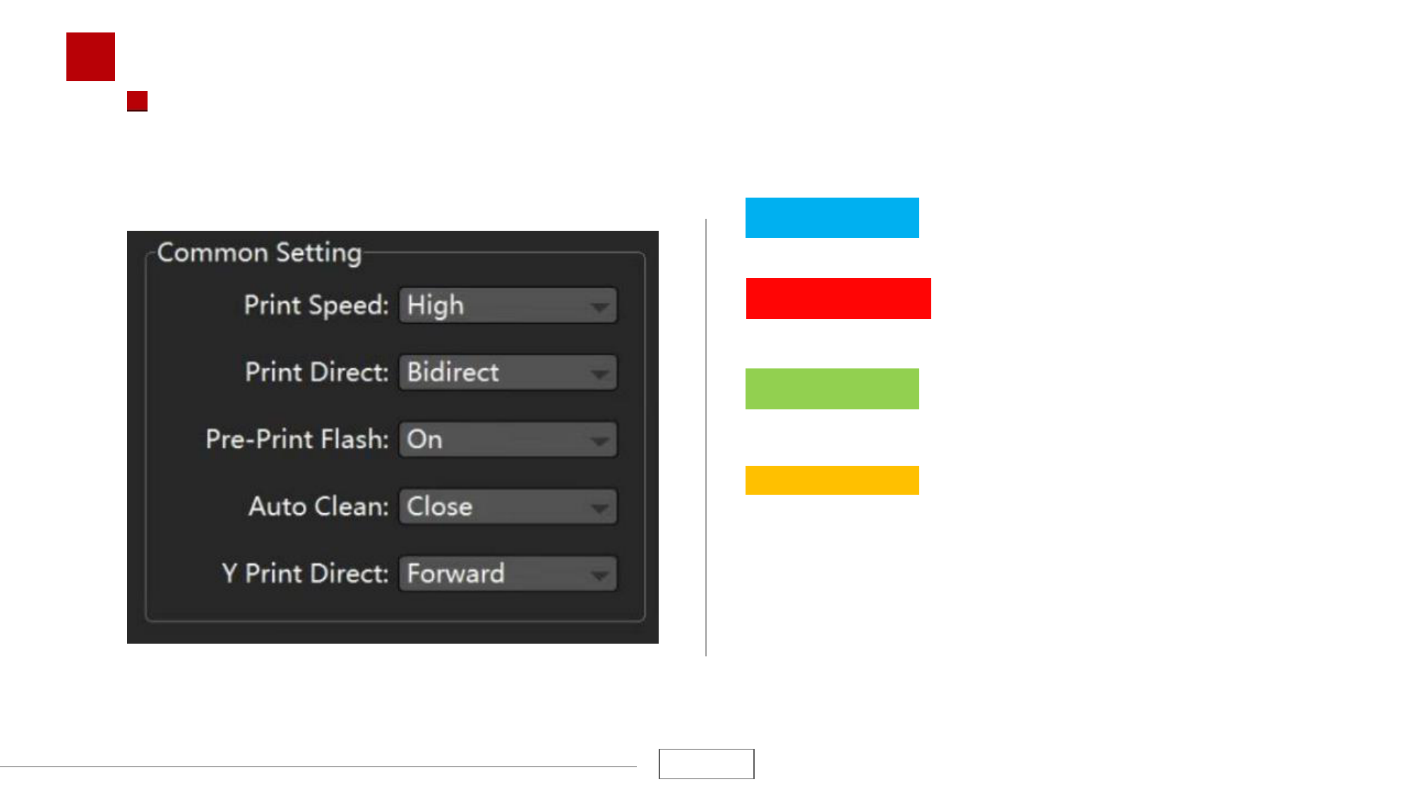 打开或关闭:打开后,打印头将在打印任务前执行快速打印