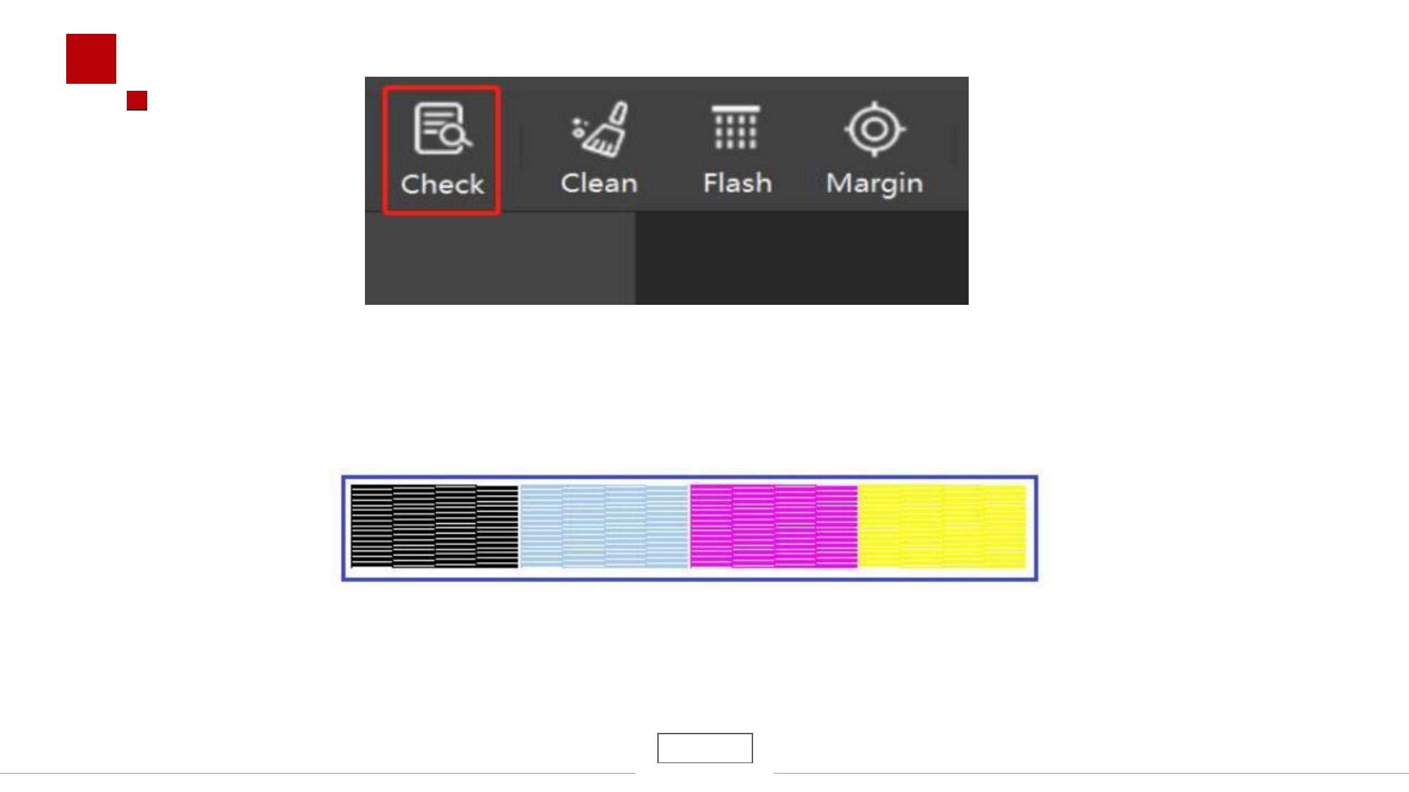 耗材上会出现测试图案,请检查测试图案
