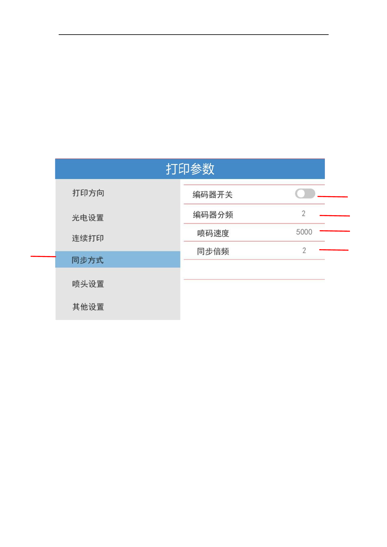 1. 同步方式:点此按钮可以设置编码器开关和喷码速度等