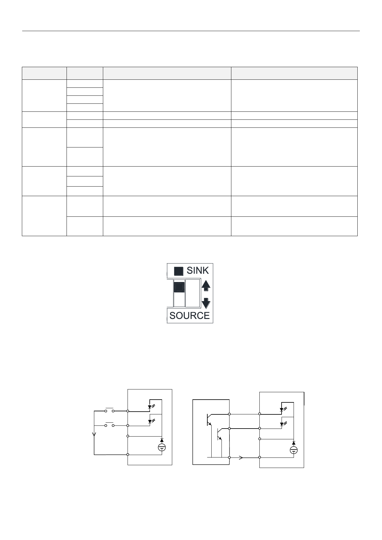 当多功能数字输入端子接通时,电流是从相应的端子流出。端子 SD 是触点输入信号的公共端。当输出晶体管是由外部
