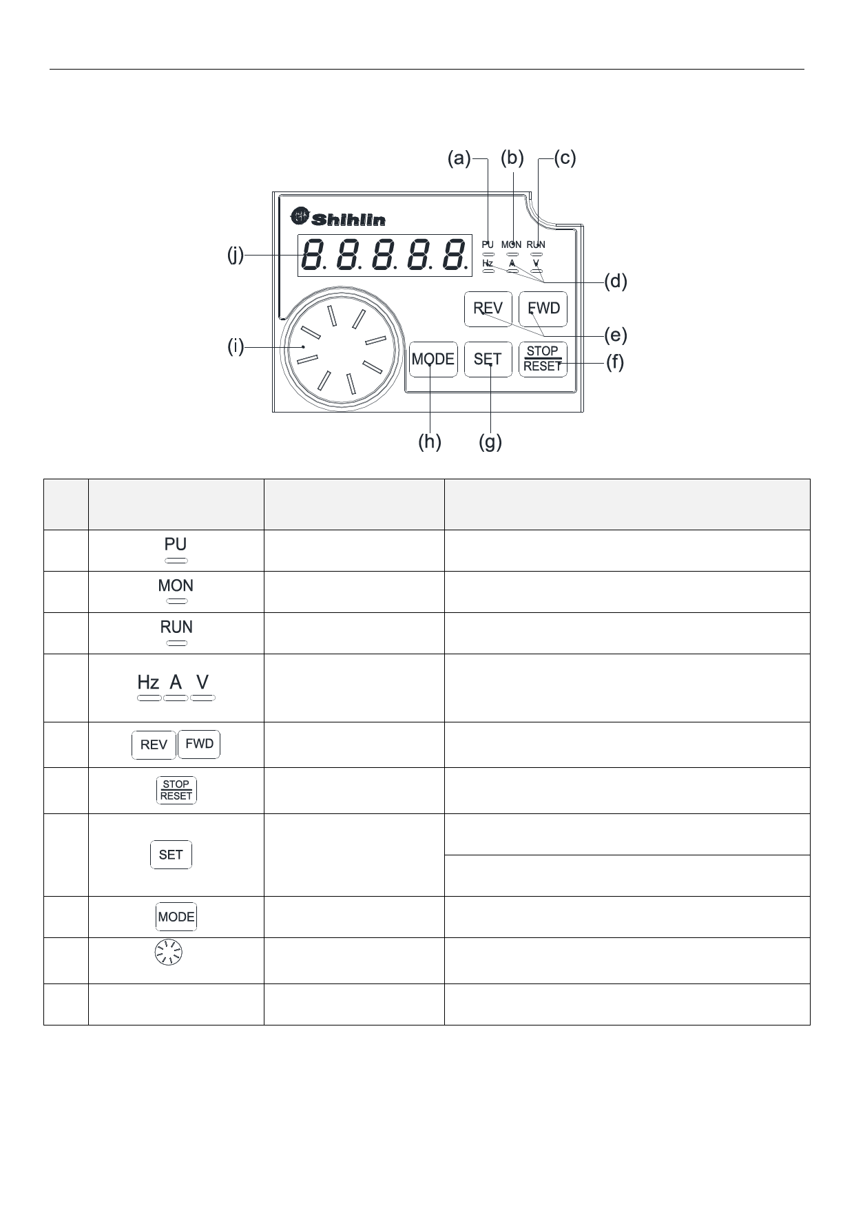 REV:反转启动,反转运行中 LED 灯亮。