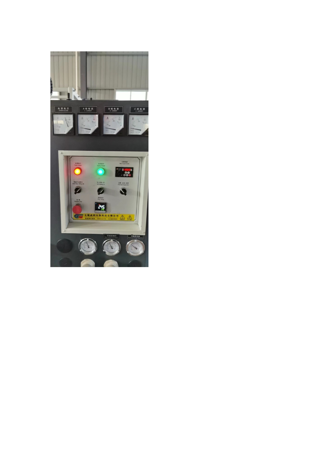 电源电压表: 总电源通电电压表上380 电压表示正