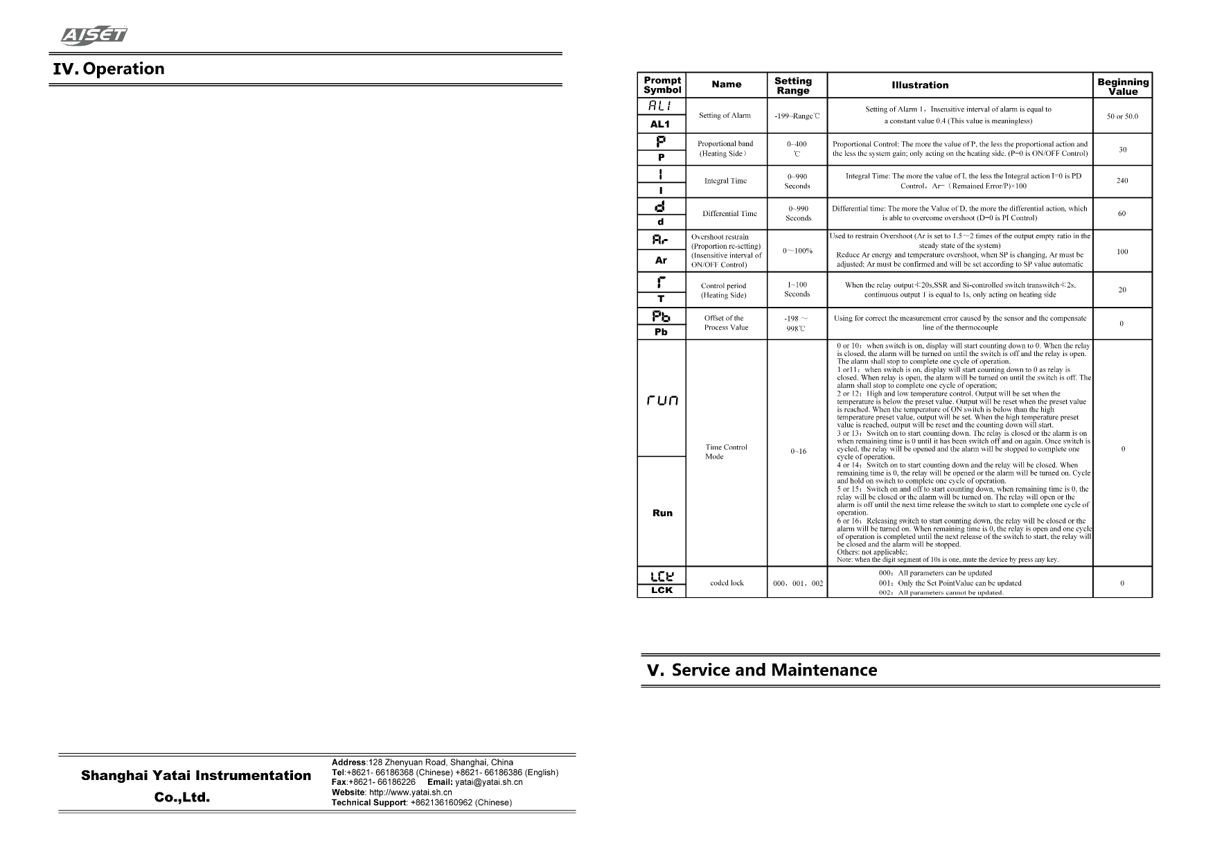 Setting of the control parameters: Push the key above 4 seconds, the upper row shows the prompt code of the