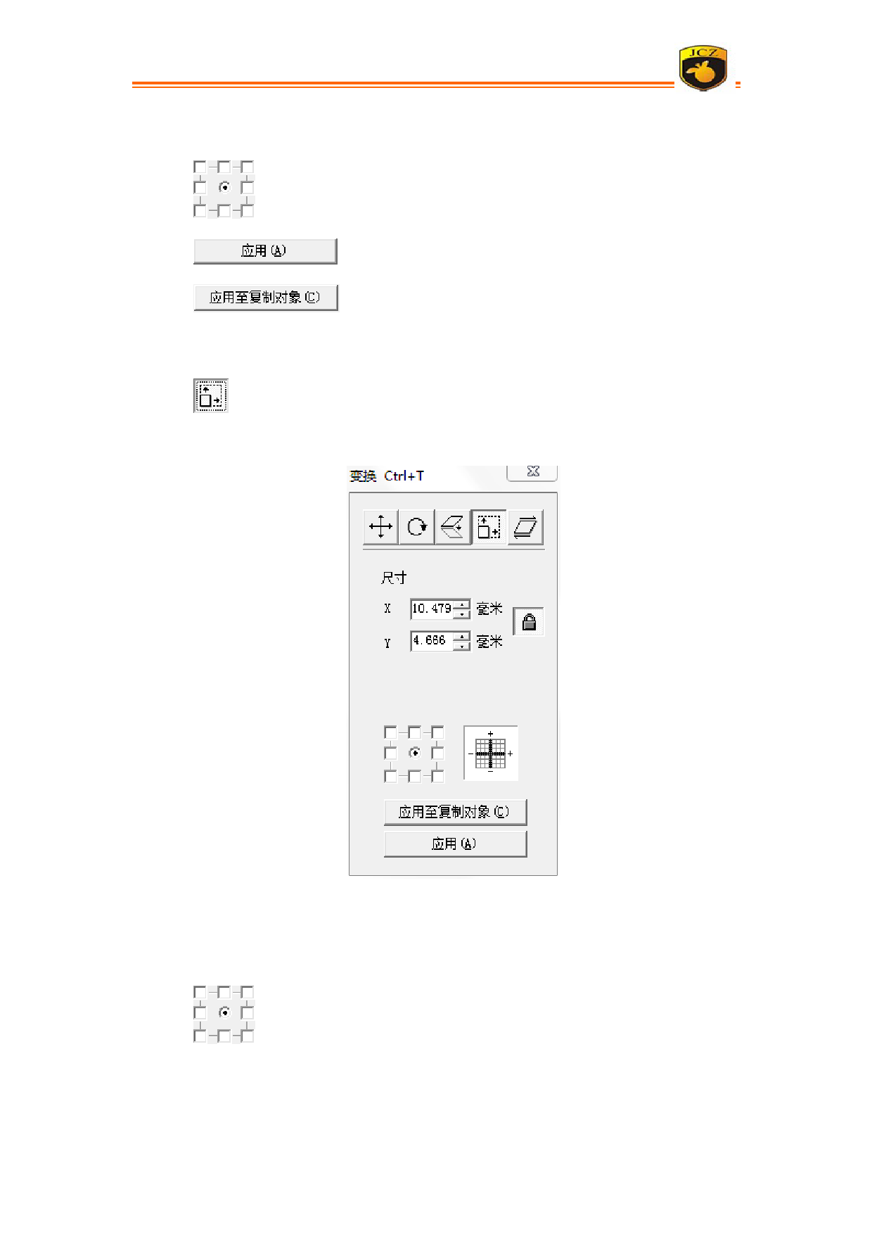 尺寸:表示当前选择对象的缩放后的尺寸大小。此功能等同于属性栏中的