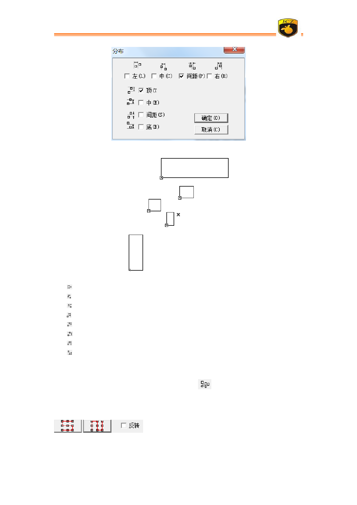 顶:以图形顶边线为基准进行分布上下排列;