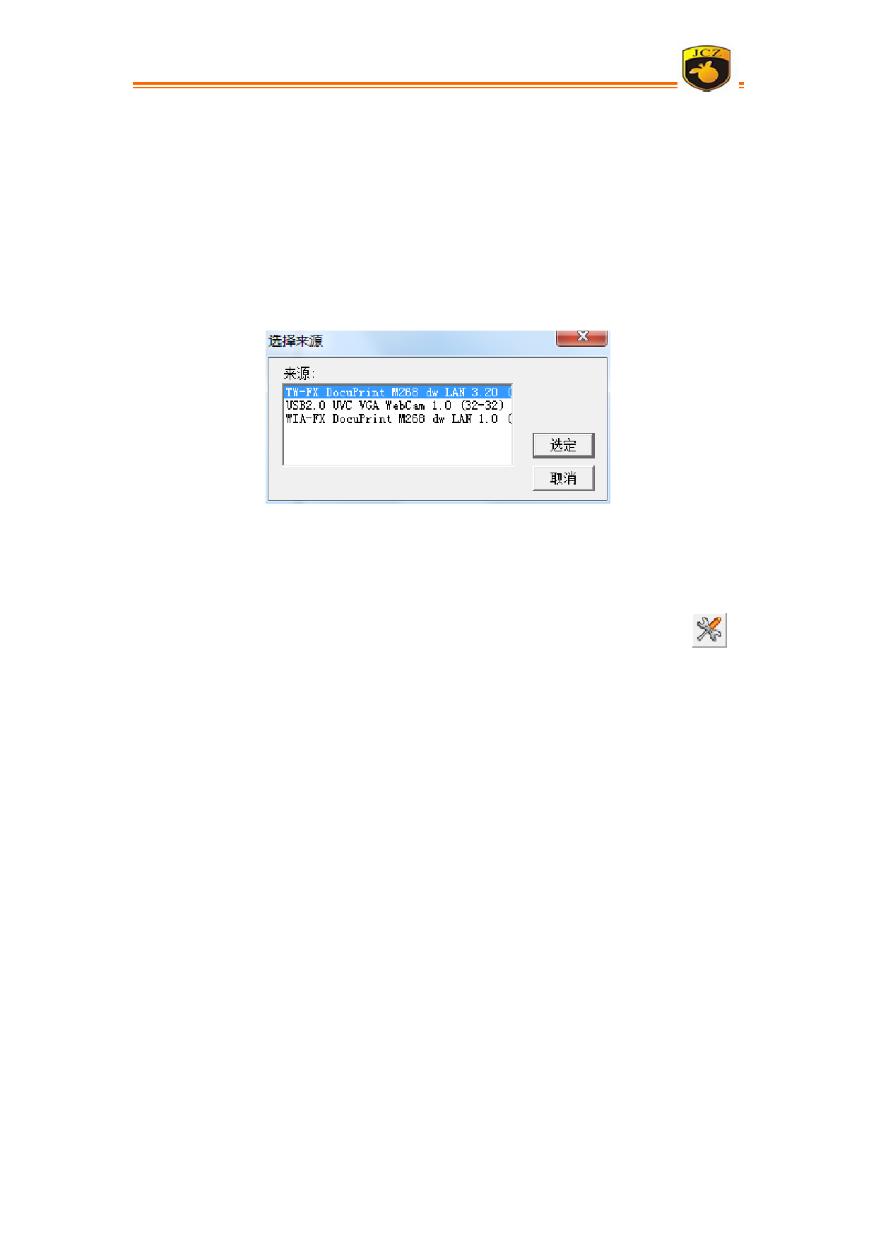 已经安装过的合法的 Twain 程序)。当选定了 Twain 设备后,系统会出现对应的