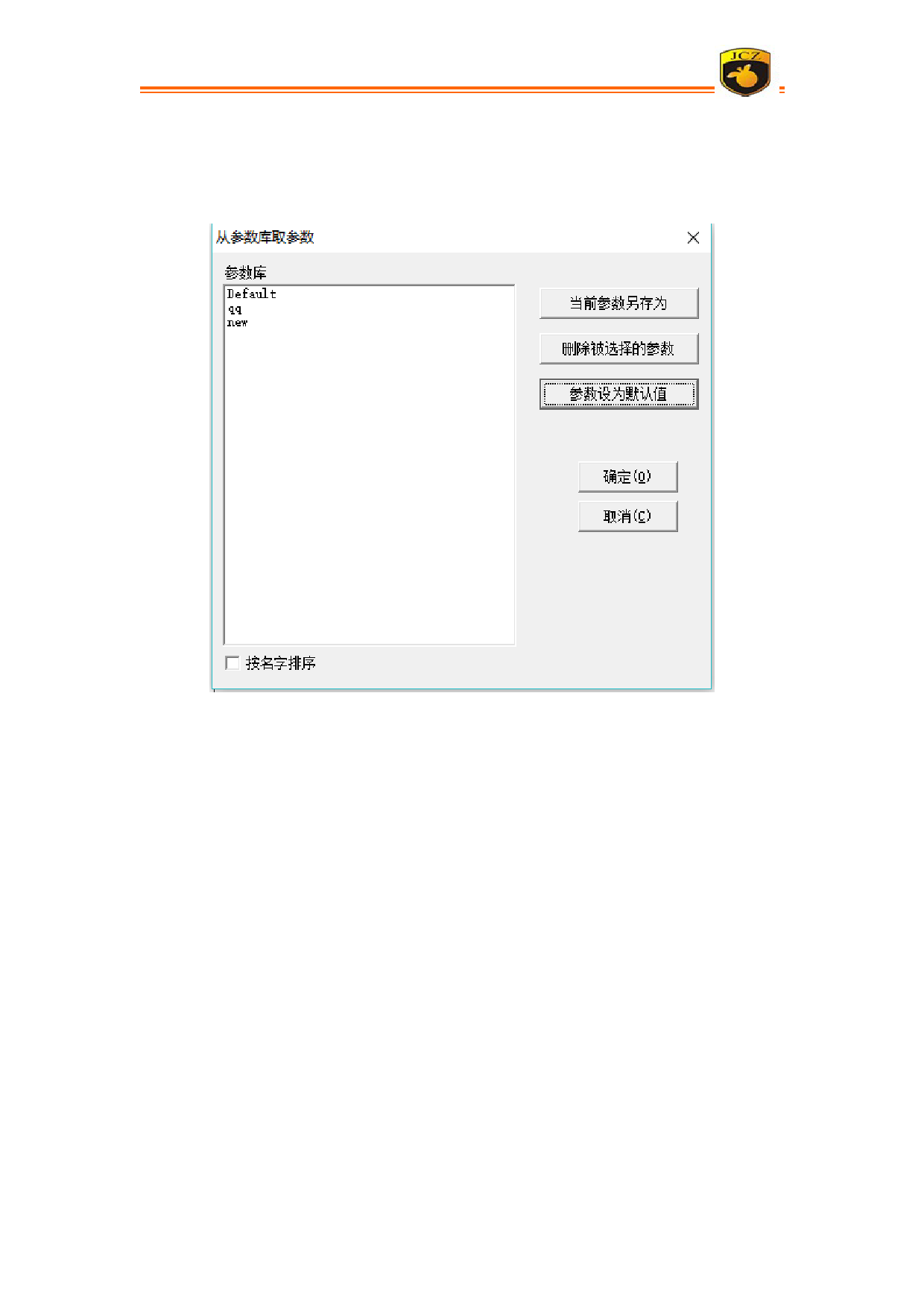 删除被选择的参数:表示把当前参数从参数库中删除。