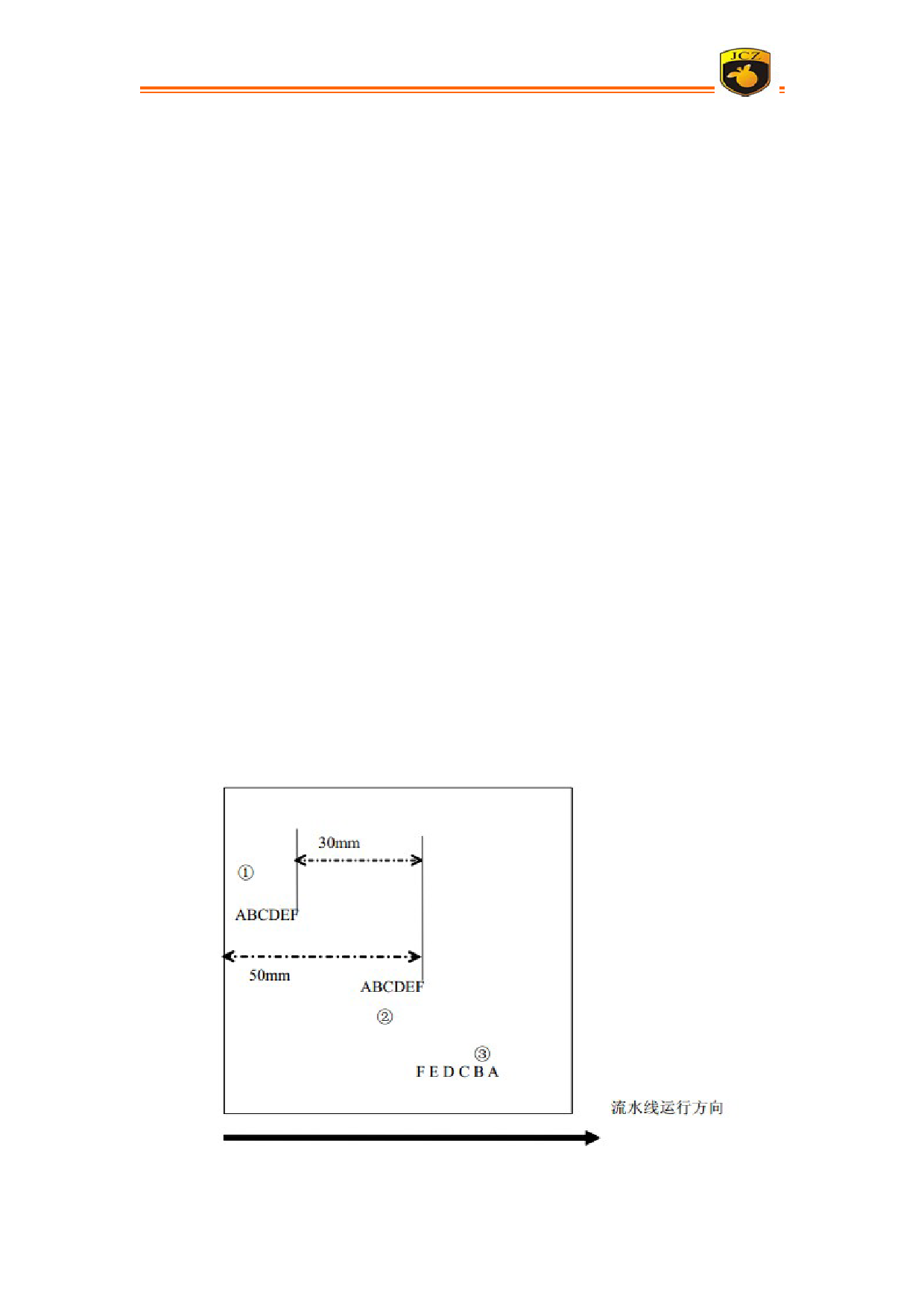 FEDCBA)。由于流水线在运动,因此实际振镜打标的位置可能如 3 所示。也就是说,