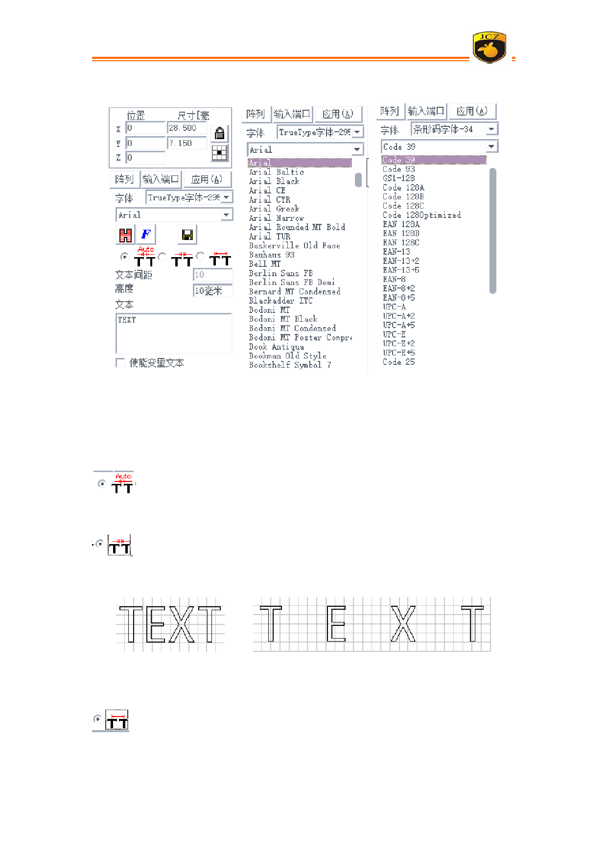 TRUETYPE 字体列表。如图 4-9 所示为条形码字体列表。