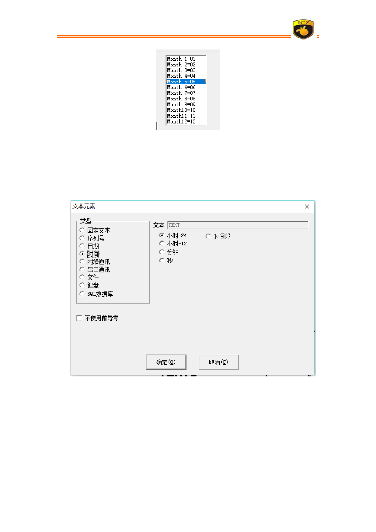 用户选择了时间元素时在文本元素对话框中会自动显示出时间元素的参数定义,