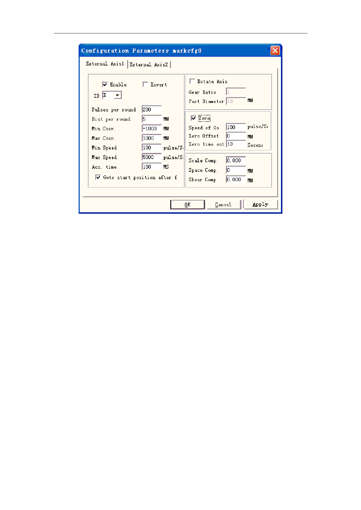 Figure 8-33 configuration parameters of expansion axis