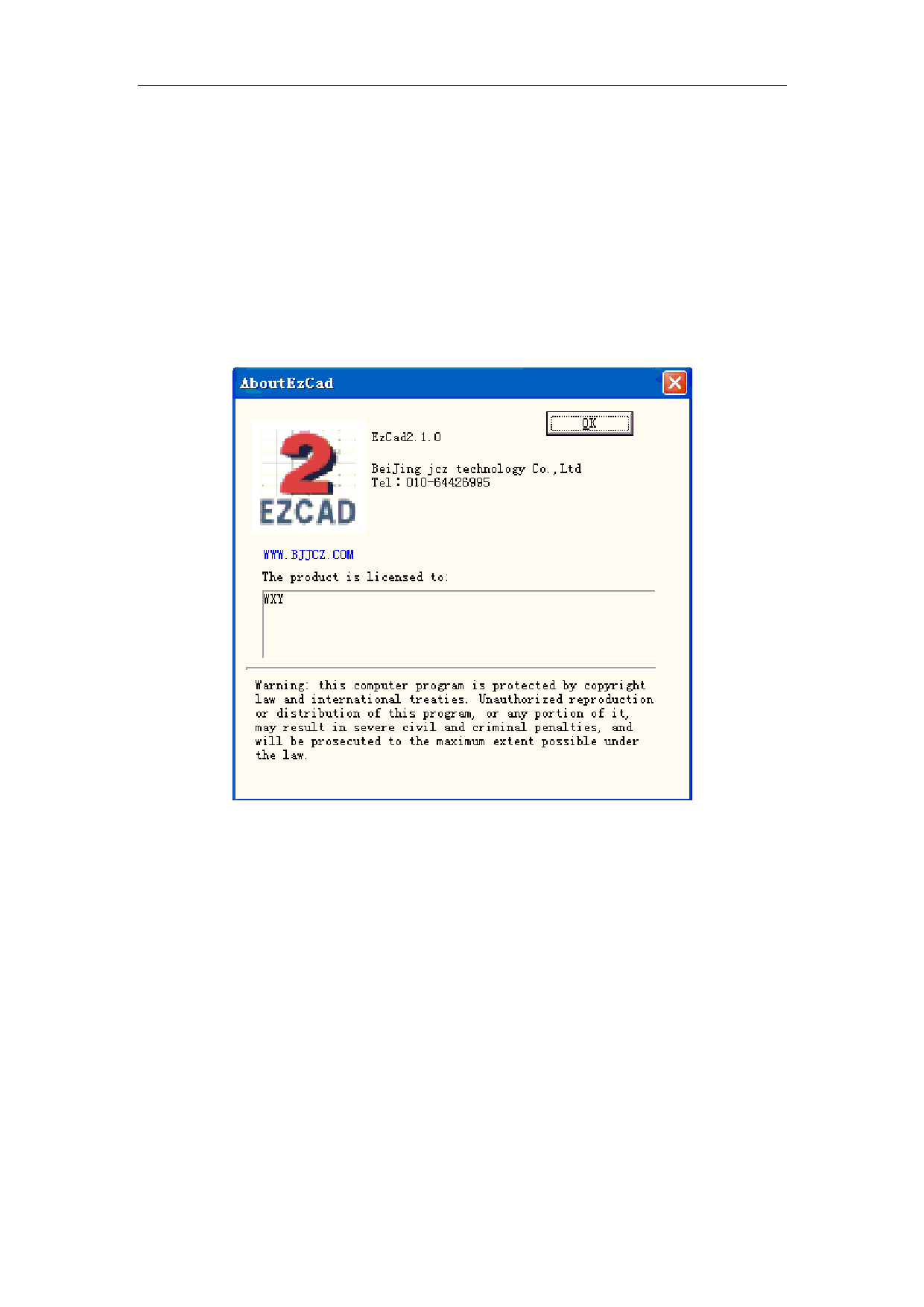 An “About EzCad2” dialog box will appear if users select command “About” as Figure 9-1