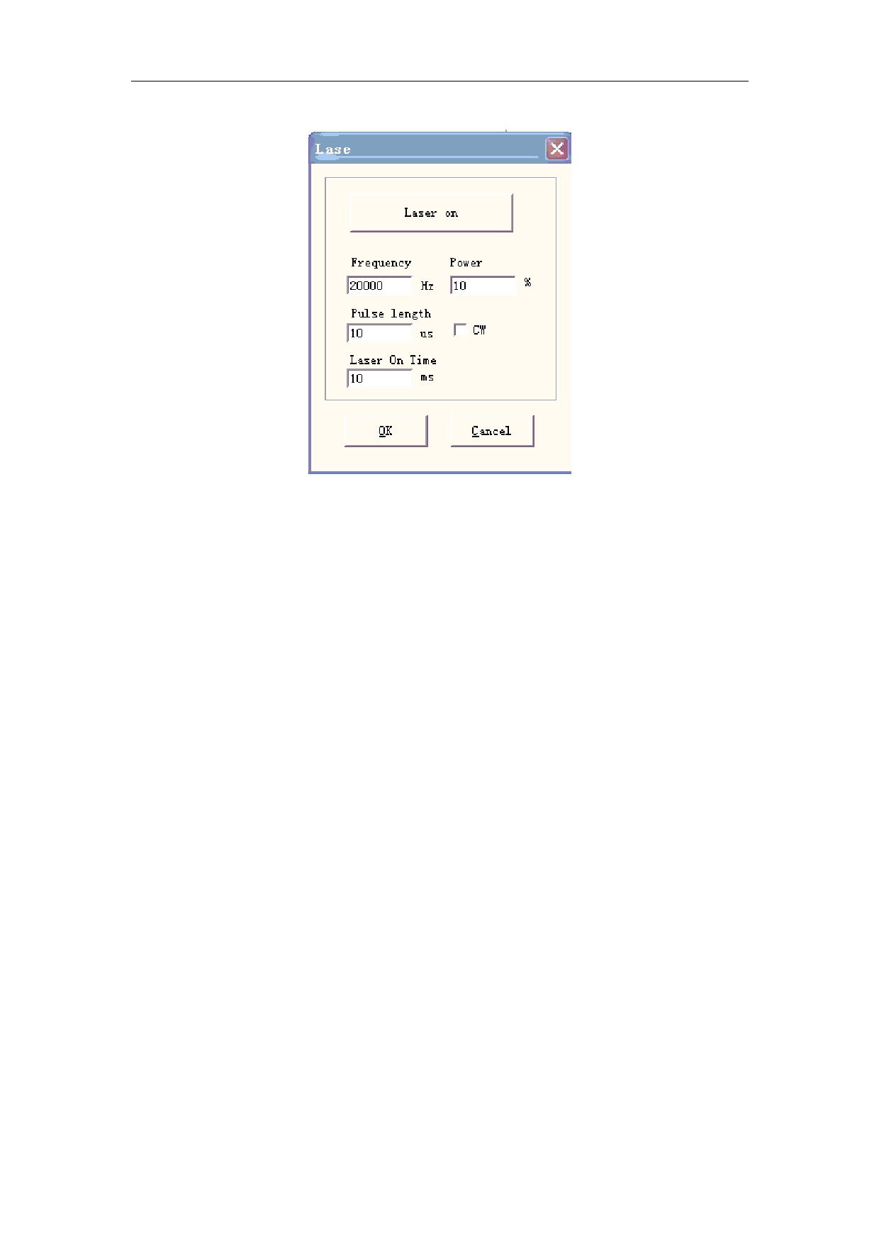 Fill in the frequency, power, pulse width and laser on time and hit “Laser on”. After that