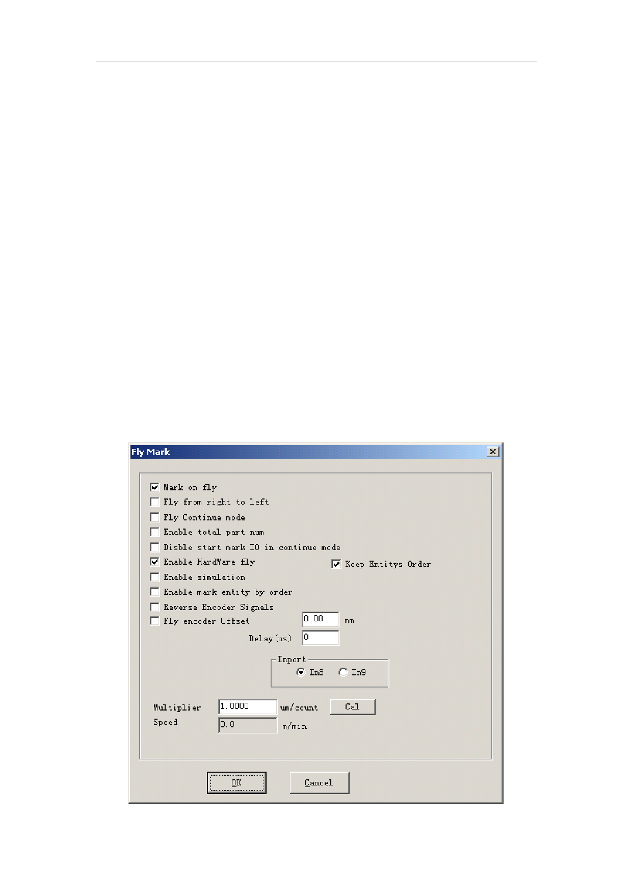 Mark with working line simultaneously. Hit “fly mark” button presenting the dialog box shown in