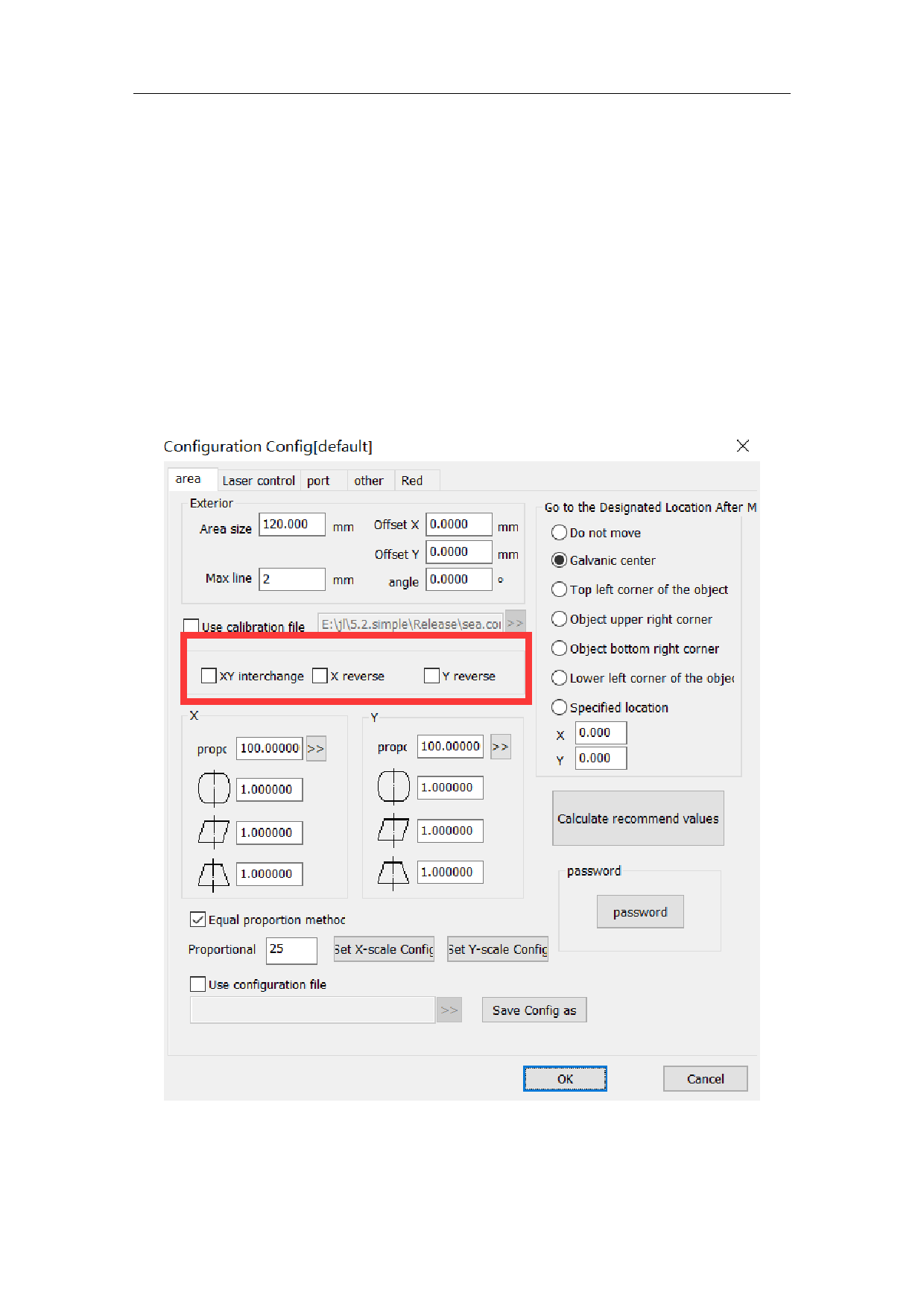 the galvo mirror 2 corresponds to y. If the xy swap is checked, the