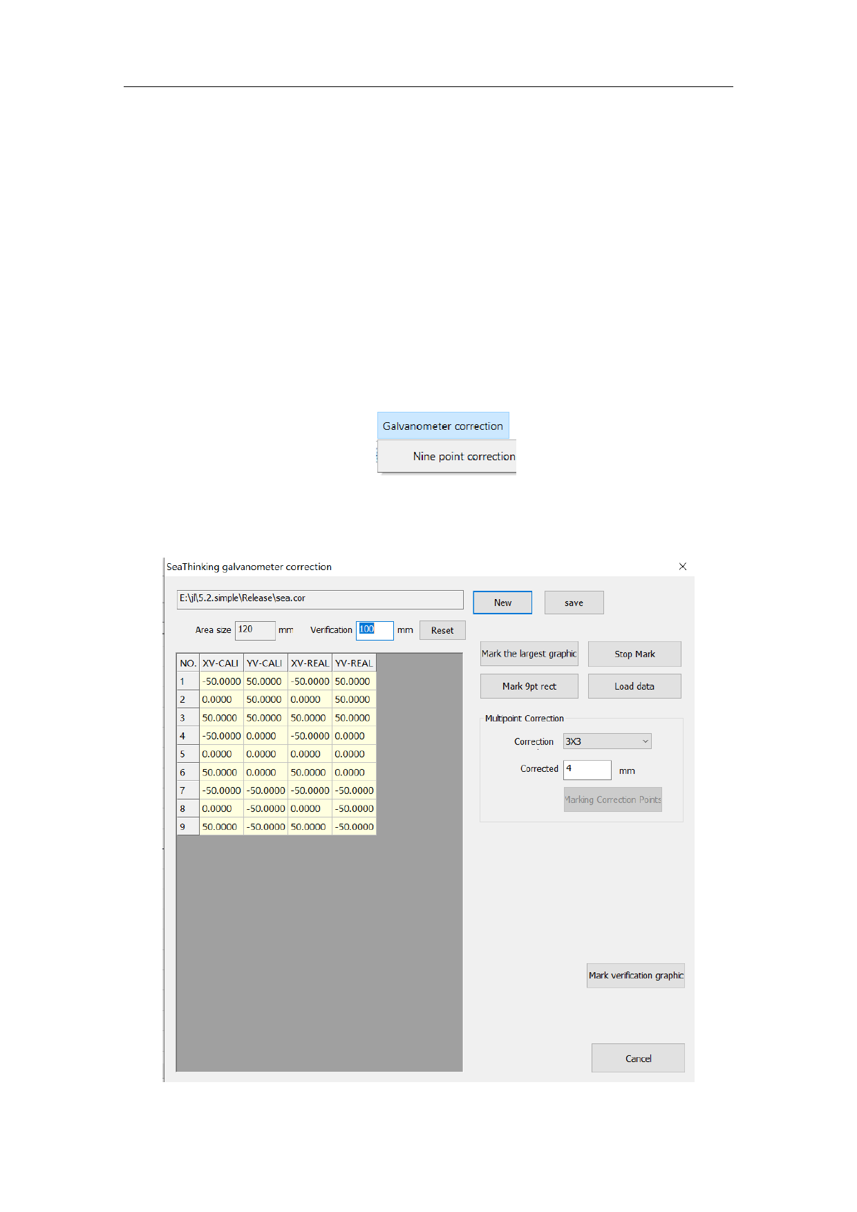 Enter "Nine Point Correction" from the menu and enter the nine point