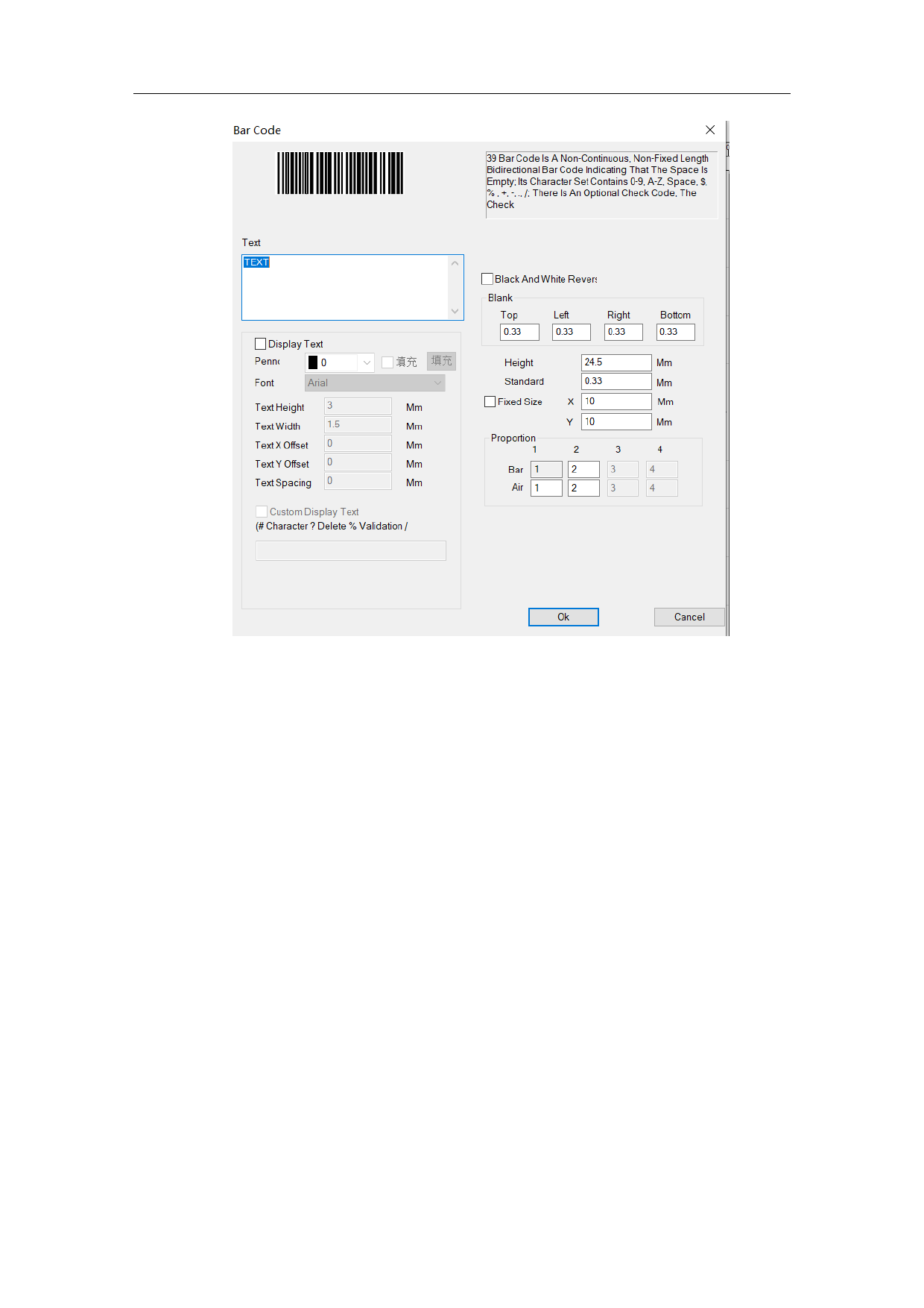 Fig. 4-19 Dialog Box of Barcode Font Parameters