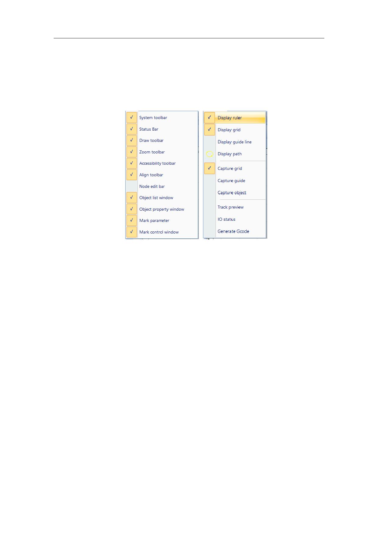 The View Menu is used for setting every option for view in the software, as