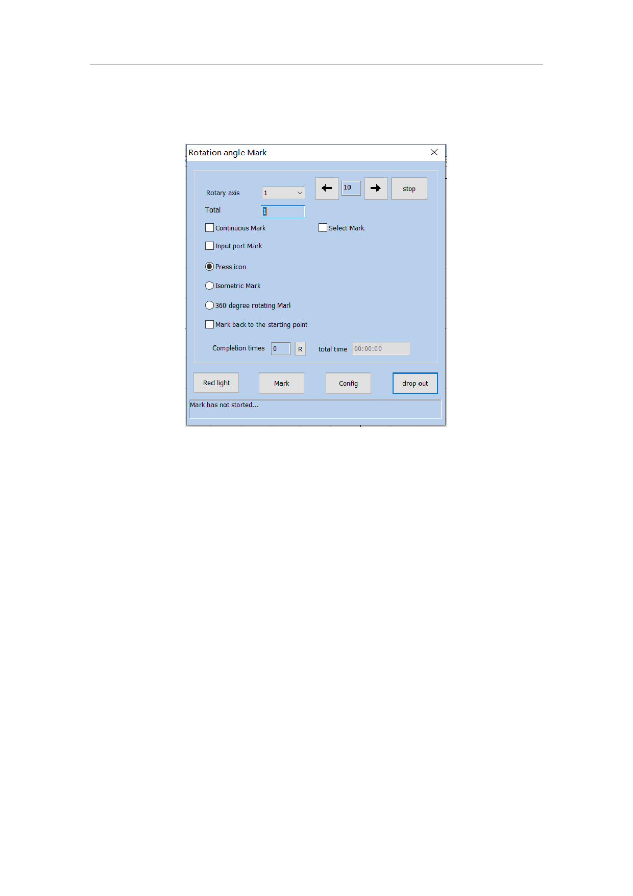 Click on the "Rotation Angle Marking" menu item under "Laser" to display the