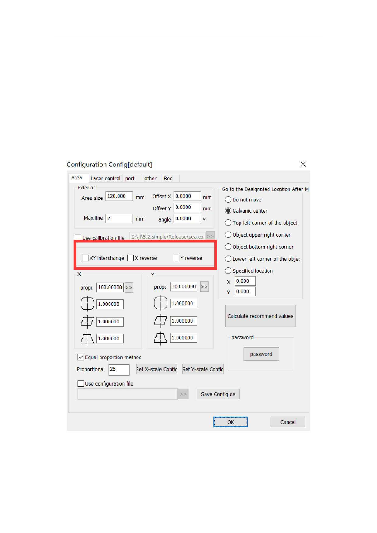 the galvo mirror 2 corresponds to y. If the xy swap is checked, the