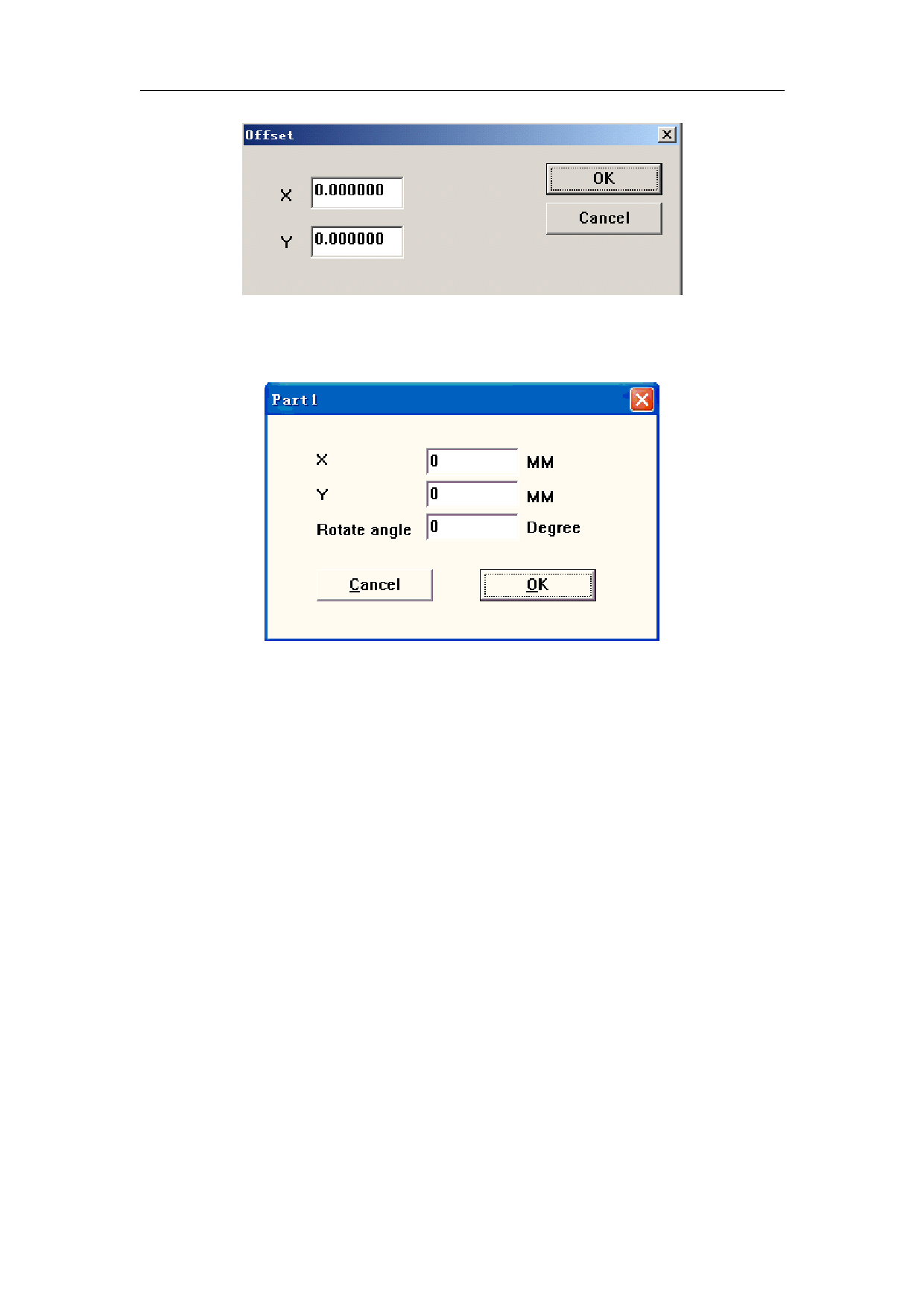 Rotate angle: the anti-clockwise angle of the part