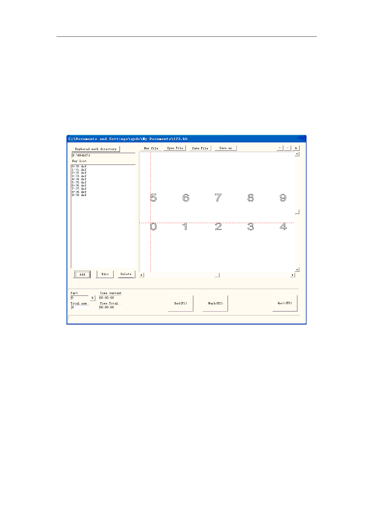 respectively is 0,1,2,3,4,5,6,7,8,9, the user must make a .dxf graphic file for each pressed key: