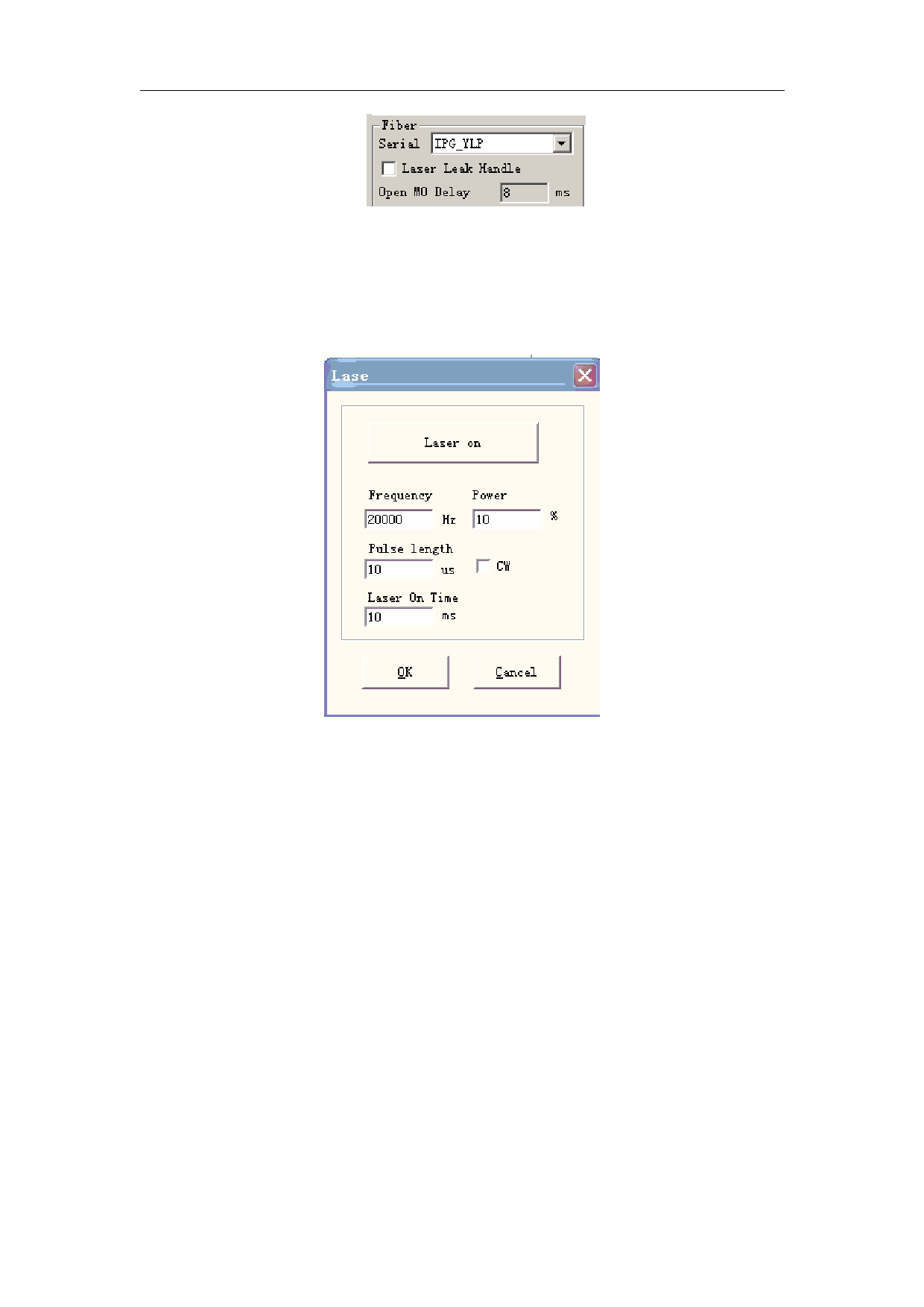 quantel, raycus, and the corresponding frequency range and MO delay will appear