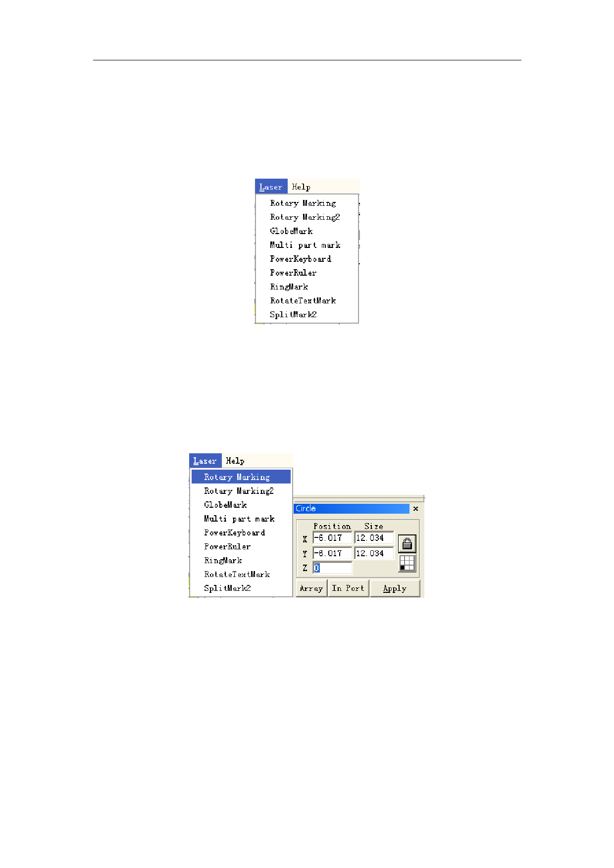 Coordinate value of axis Z stands for rotary angle in rotary marking. The software will rotate