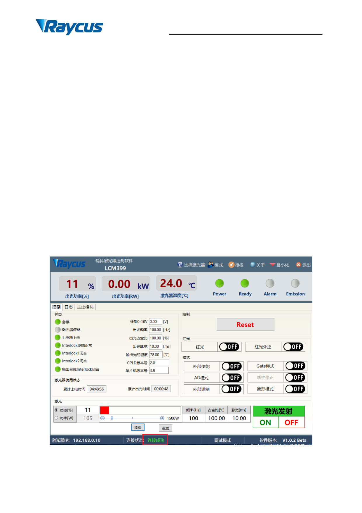 序以及人机交互操作,实现读取和设置激光器参数以及控制功能。软件显示的界面按照功能