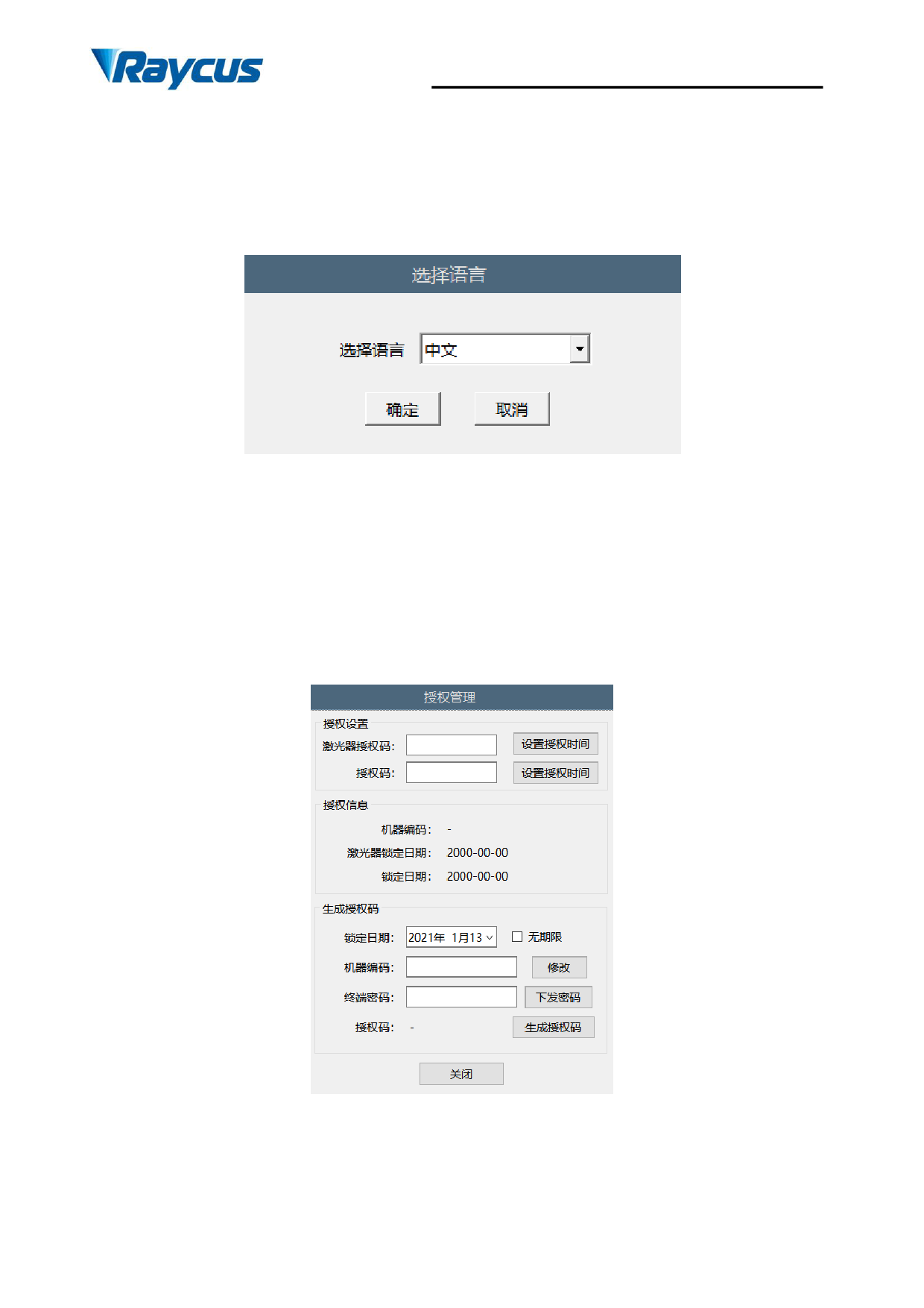 授权界面用于控制激光器的限时锁定,在打开授权界面时,加载一次机器编码、激光器