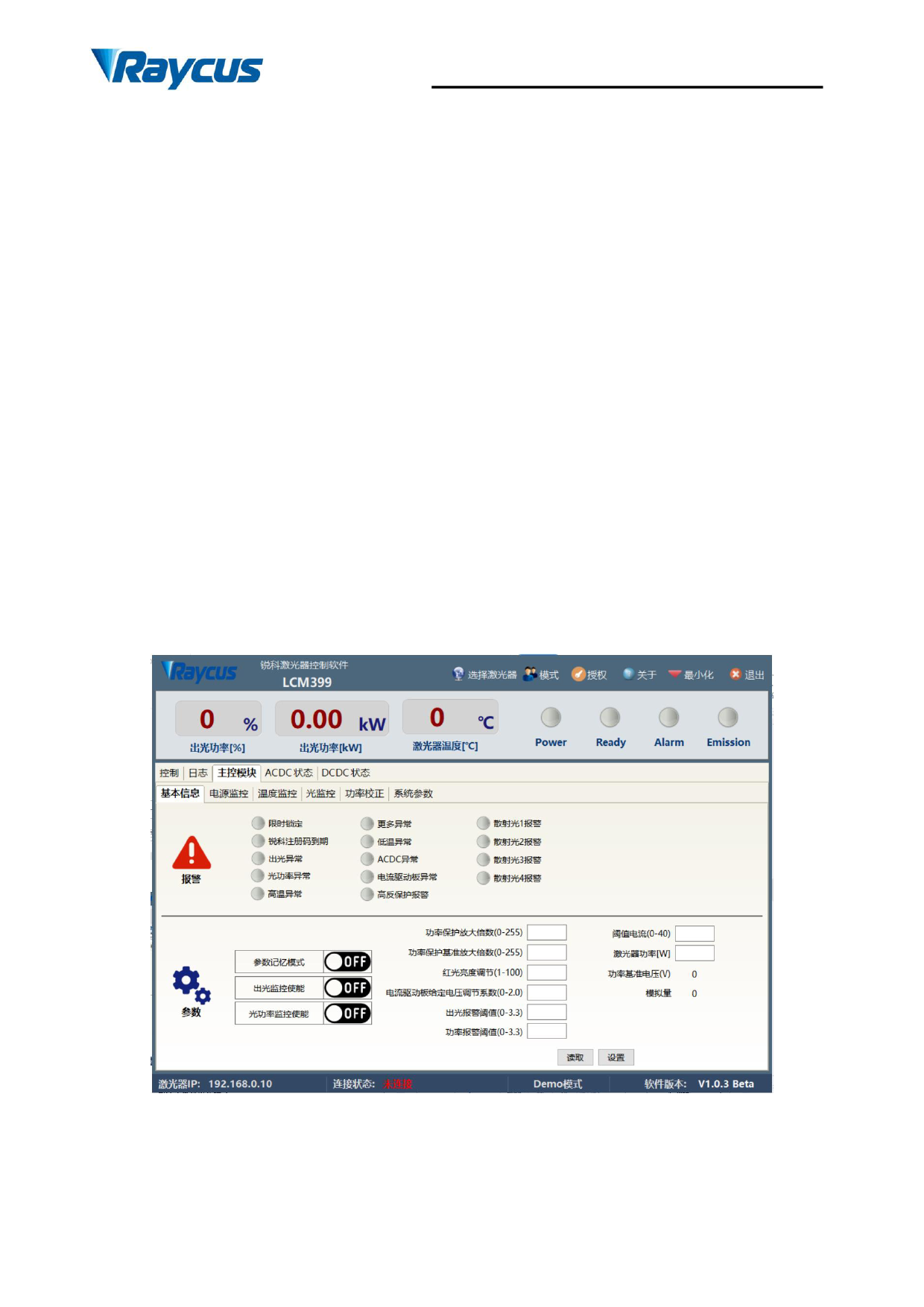 诊断模式:当激光器出现故障需要售后远程进行诊断,或者集成商需要了解激光器的更