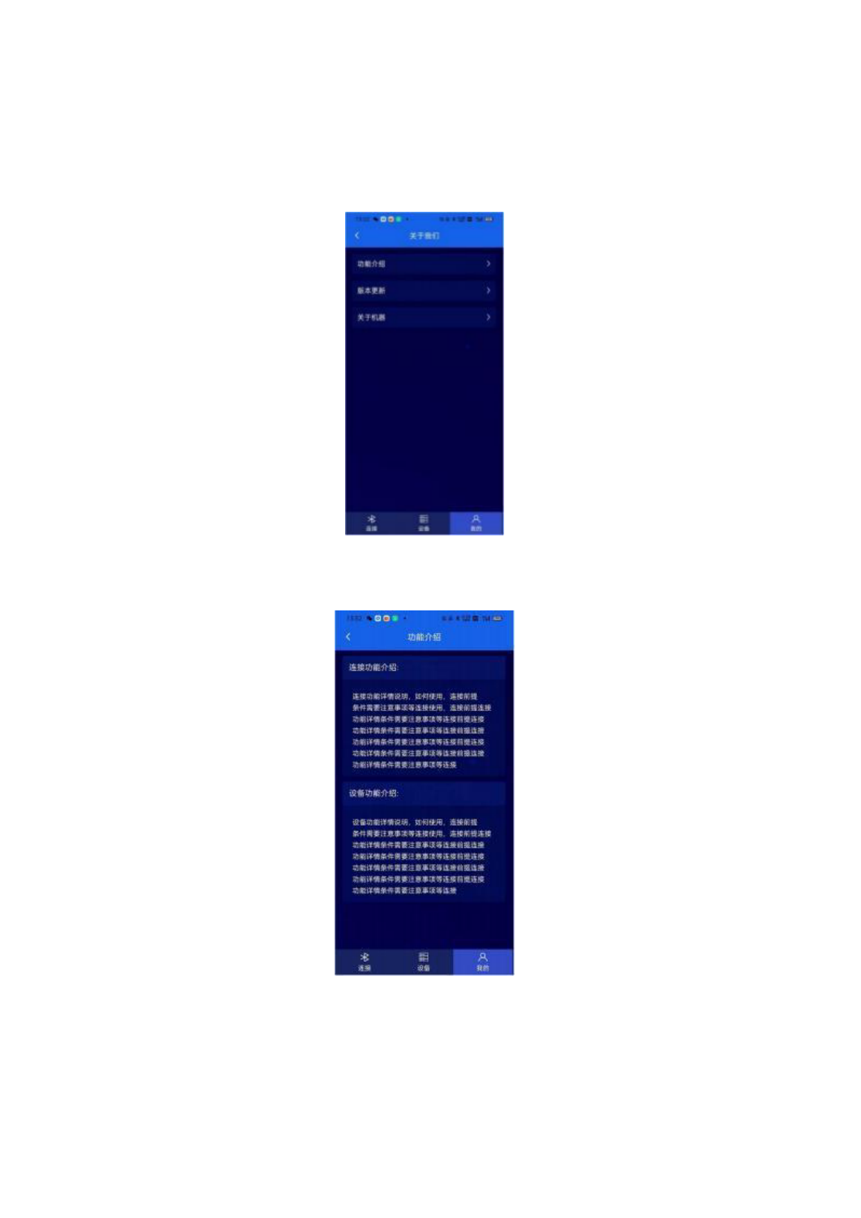 进⼊我的⻚⾯,可以看到有功能介绍、版本更新、关于机器,如图