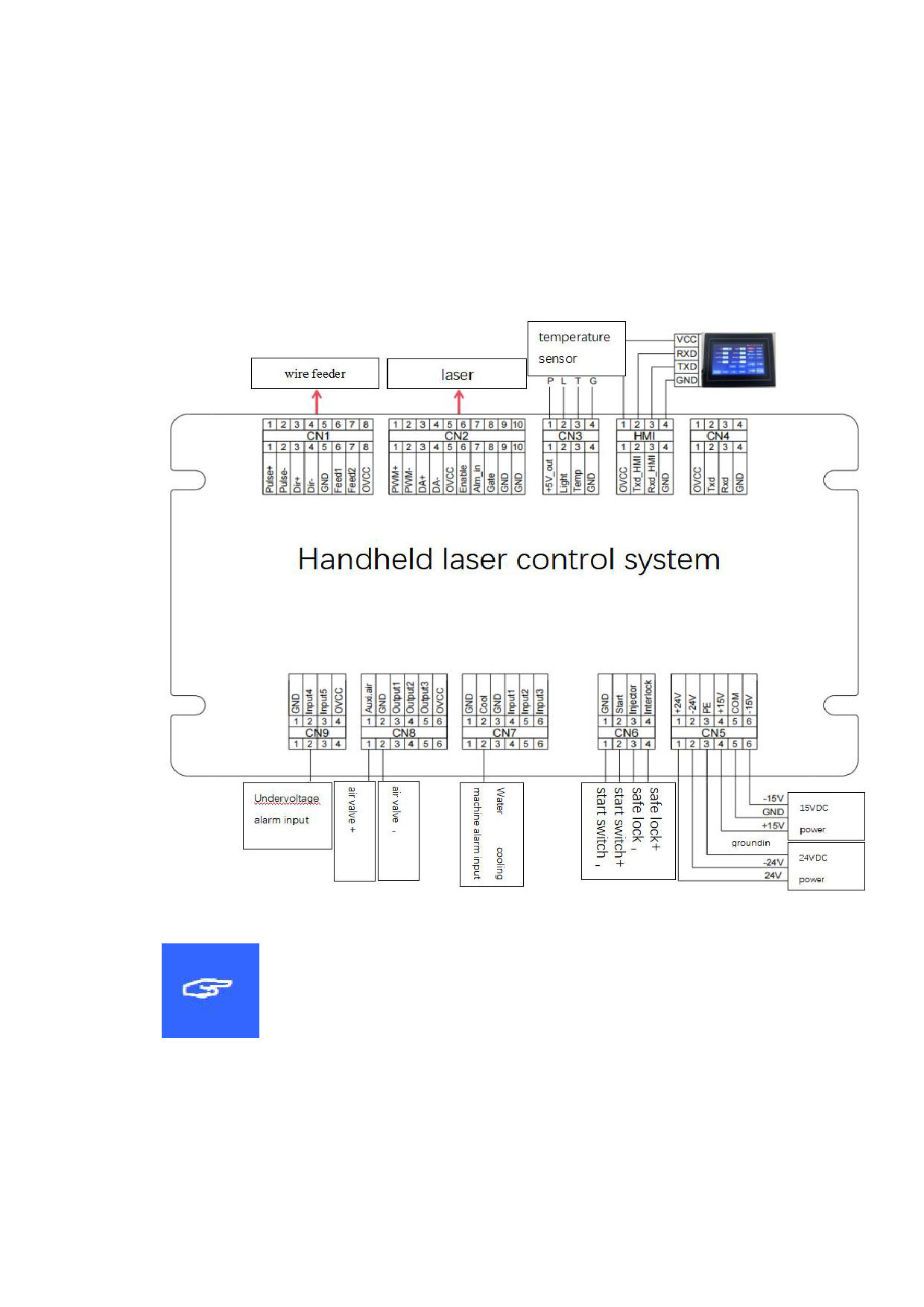 The following figure is a schematic diagram for wiring of the whole