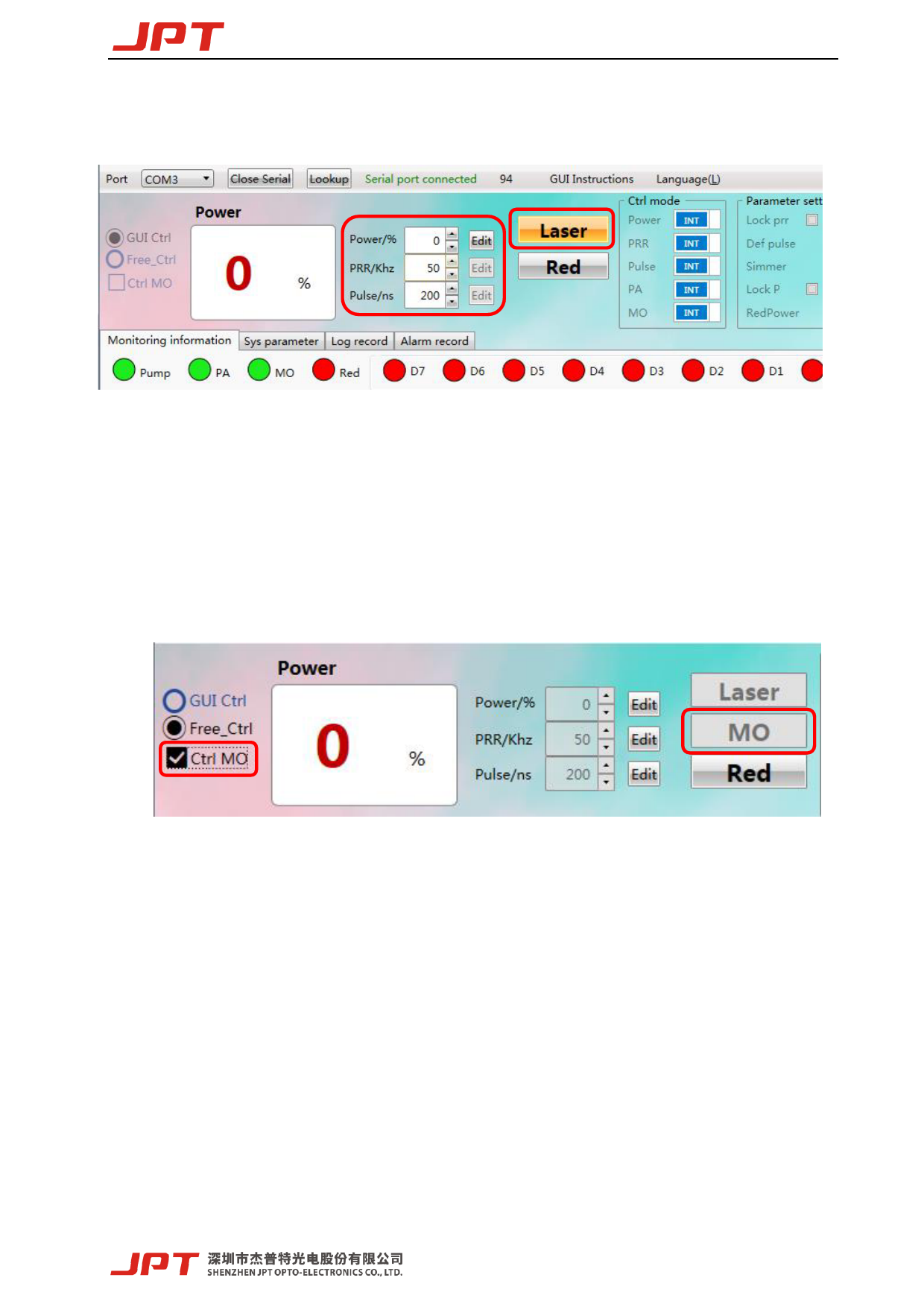 Note: All the parameters except power can’t be modified during emission.