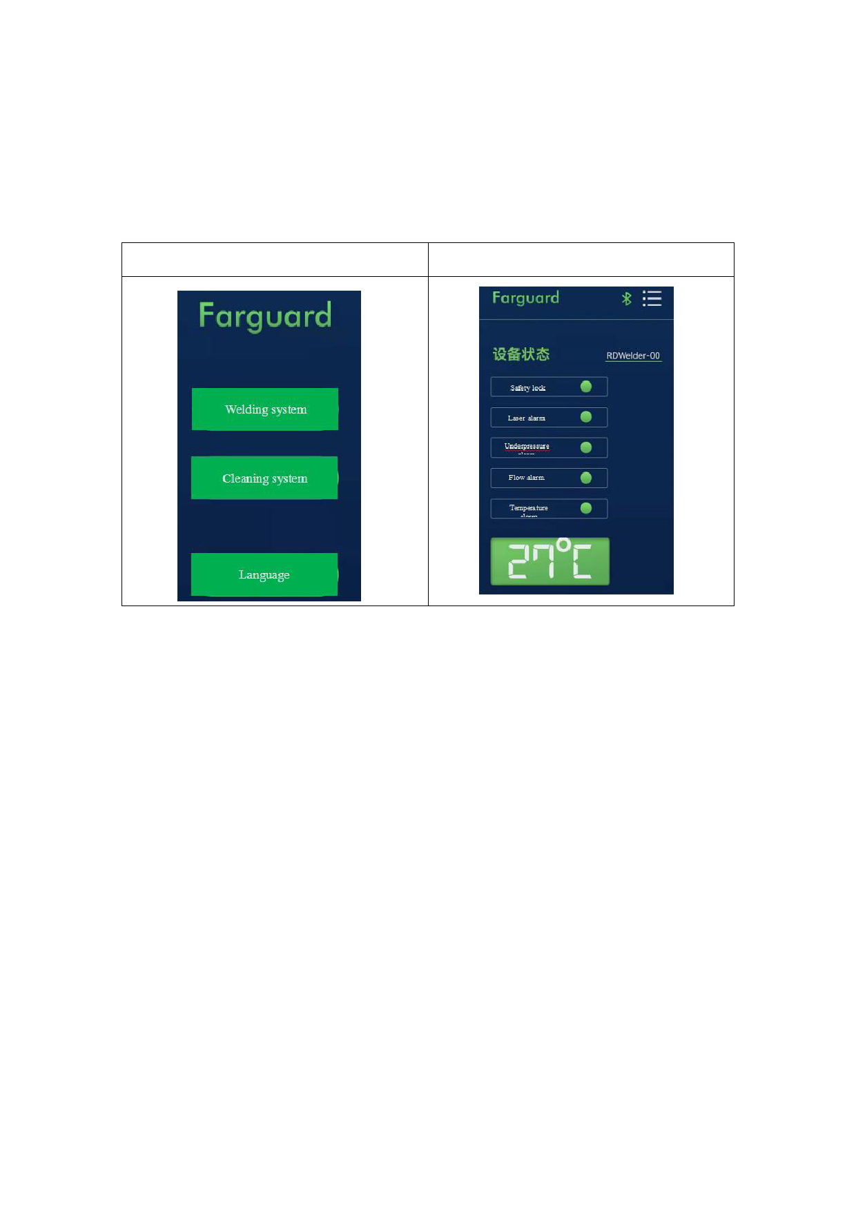 In the monitoring main screen, users can select welding system and cleaning