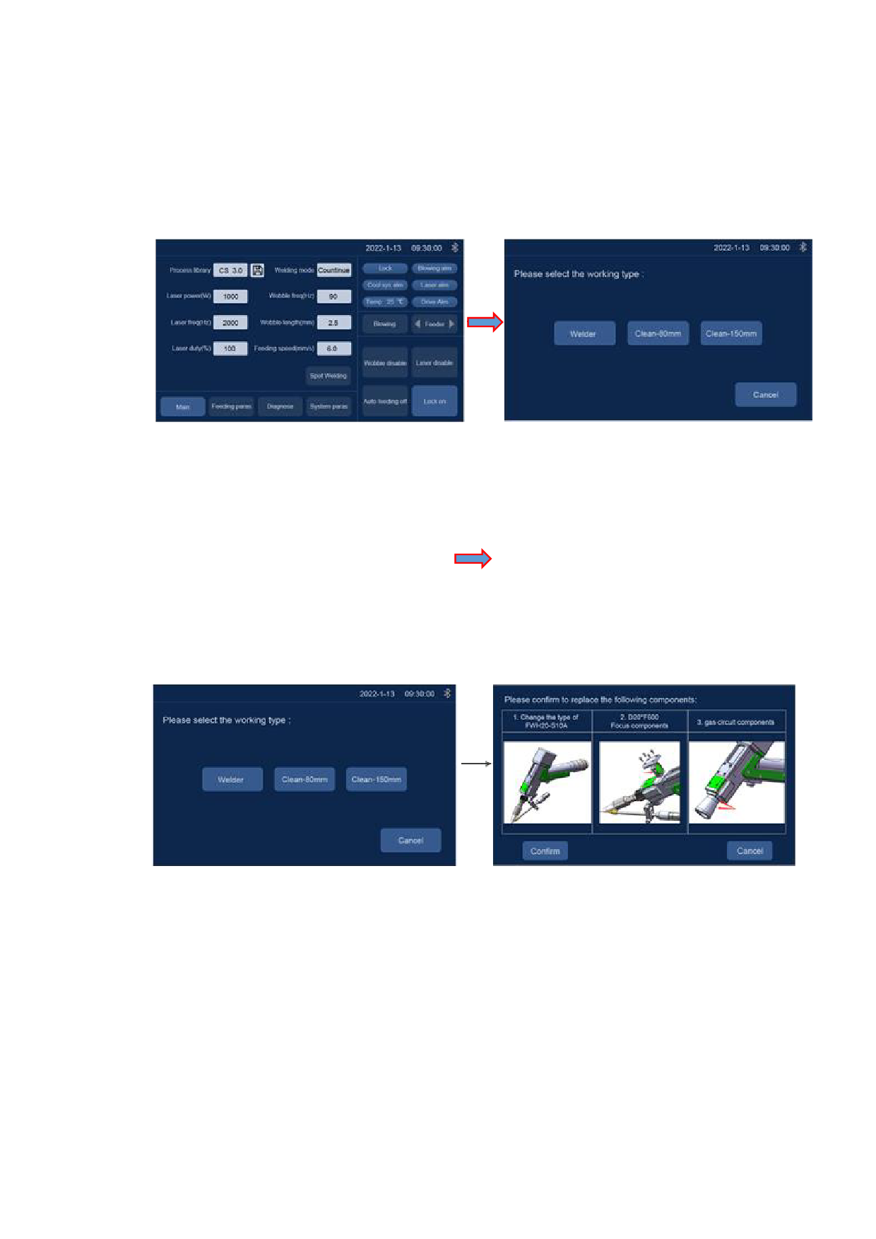Taking the welding mode switched into 80mm cleaning mode as an example, enter