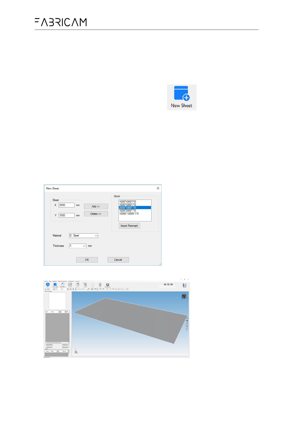 Select a sheet in the Stock List or insert values on X,Y, select Material and Thickness and click