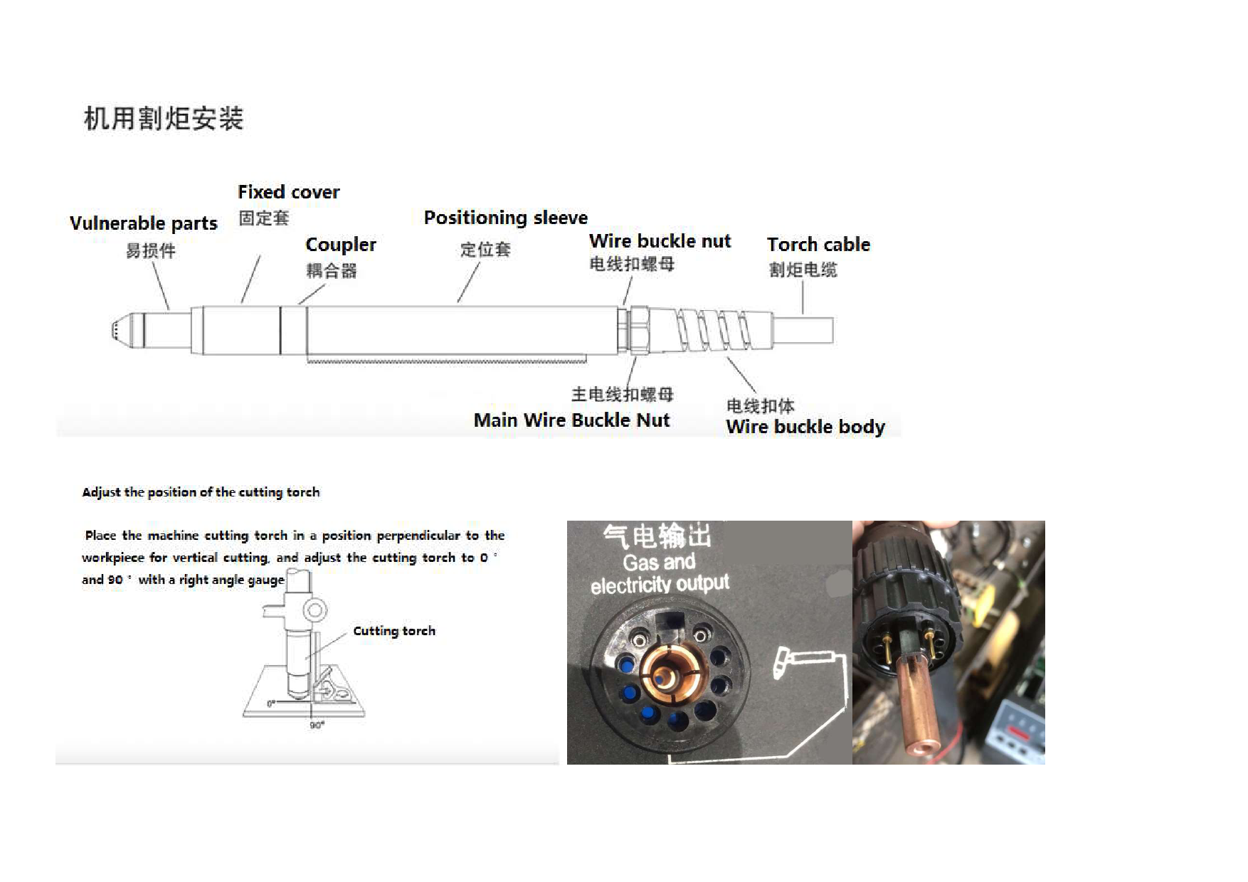 Illustration of cutting torch for low frequency arc ignition plasma application (105A diameter 35mm, 125A diameter 44mm, angle 35 degrees)