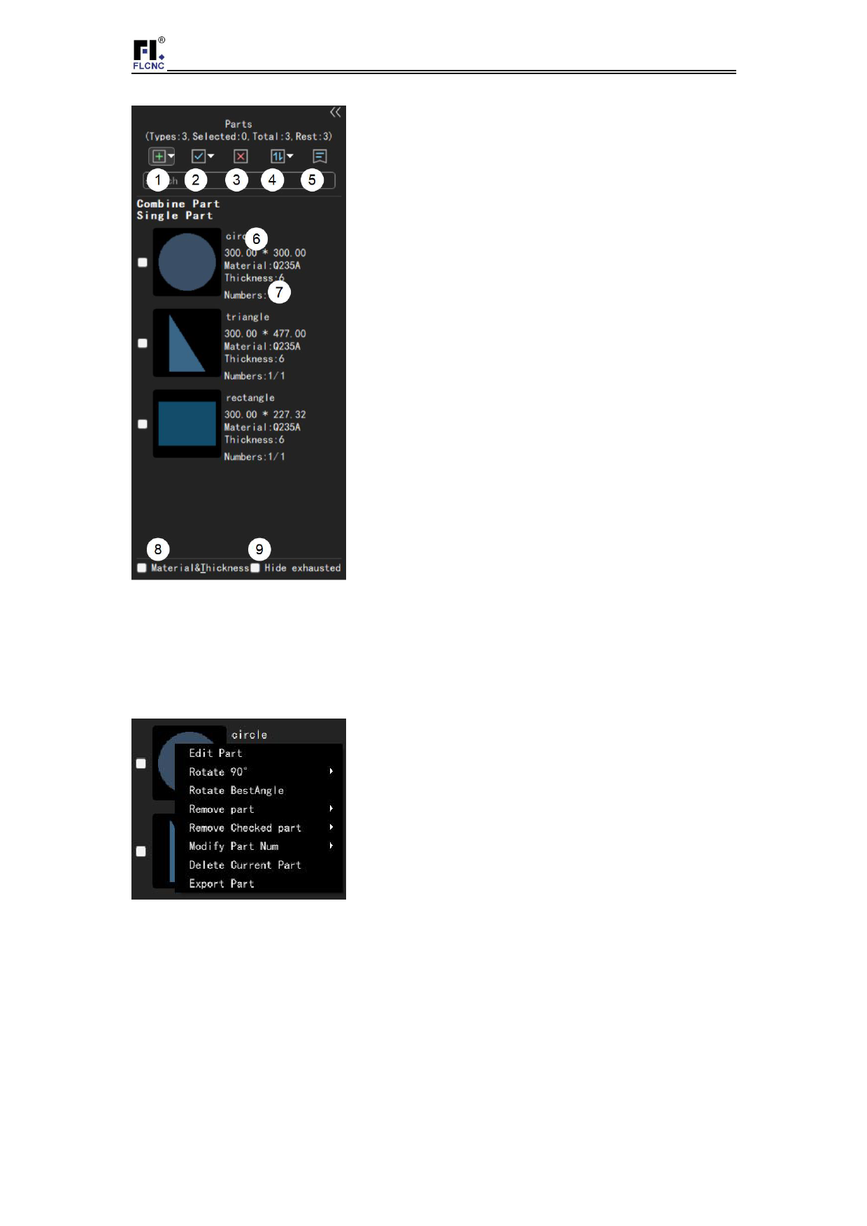 (9)Hide used parts: If checked, the parts that have