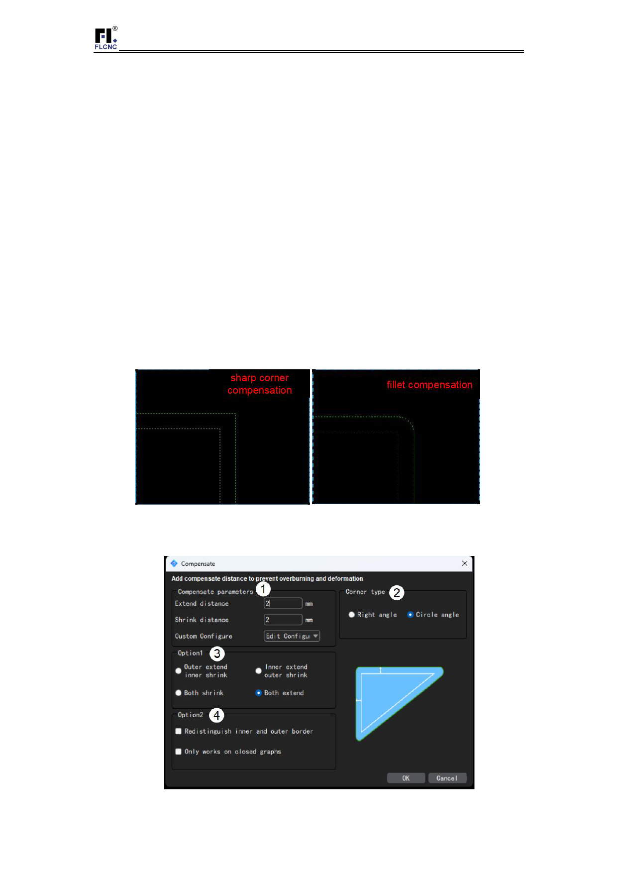 Compensation is implemented to prevent cutting defects caused by laser or flame