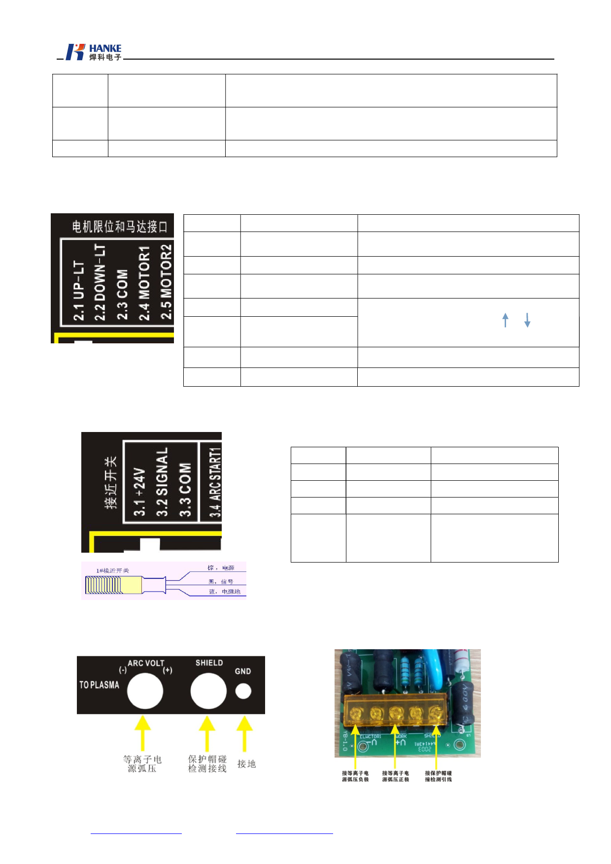 此接口与接近开关相接,与等离子启动开关相接,定义如下: