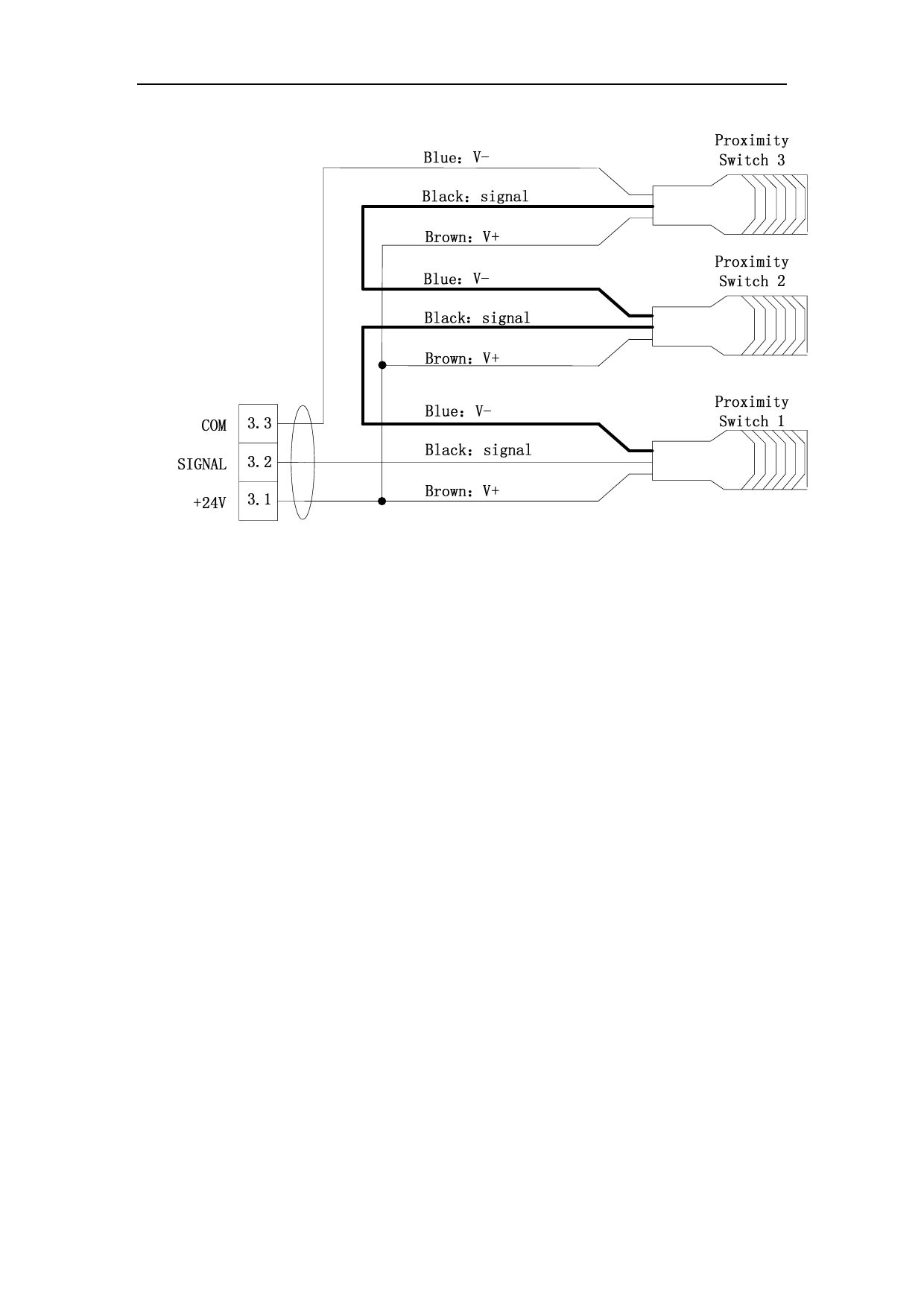 Figure 3.10 Three proximity switch connection method