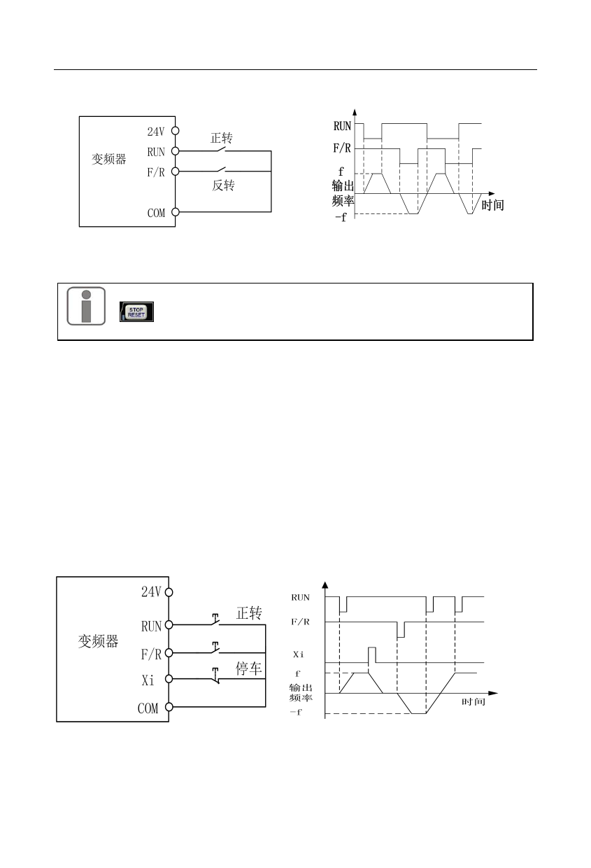 F00.03=2:端子 RUN 正转,Xi 停车,F/R 反转