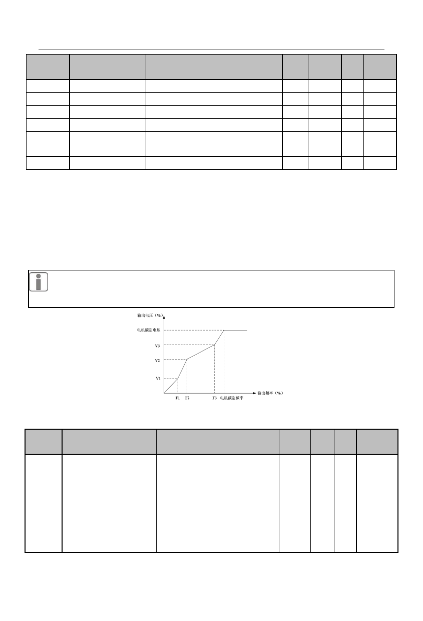 F05.02 多点 VF 电压点 V1 0.0~100.0(100.0=额定电压) % 1.0 ● 0x0502