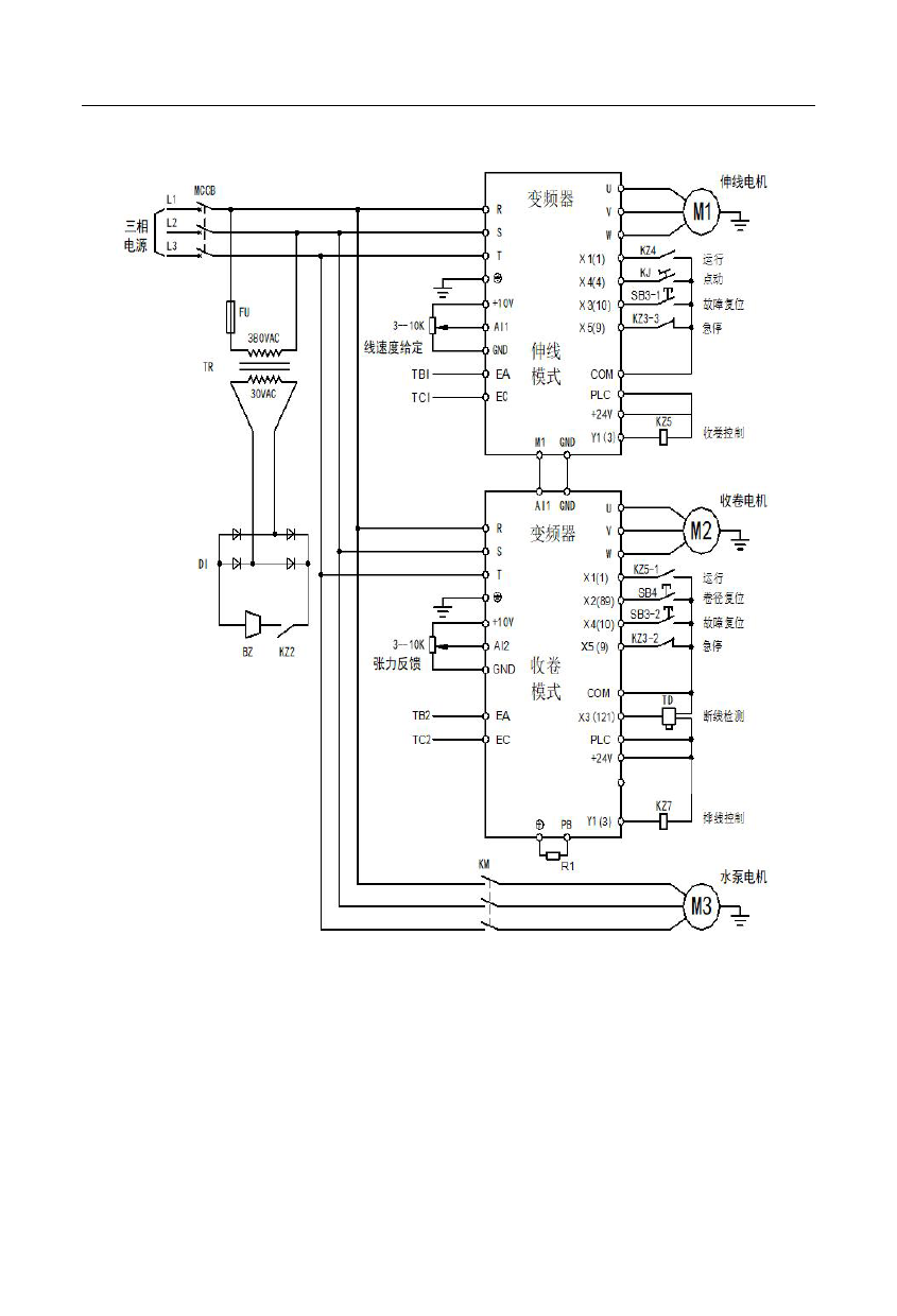 2、放卷与直进式拉丝机类似,请参照收卷接线图及参数宏表进行接线。
