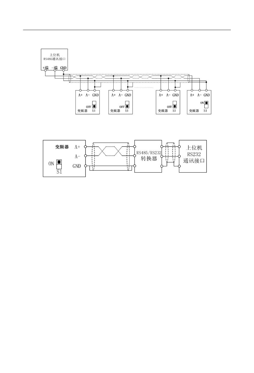 通过 RS485/RS232 转换器与上位机连接通讯: