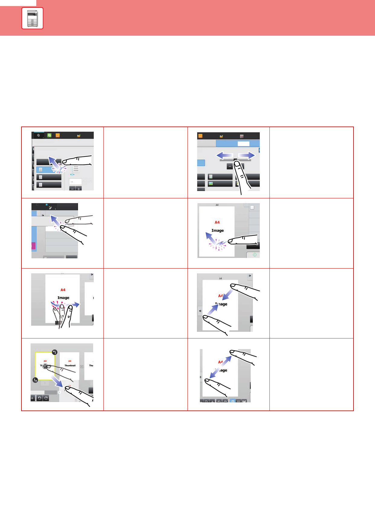 In addition to tapping, equivalent to conventional touching, the touch panel of the machine can be operated by long